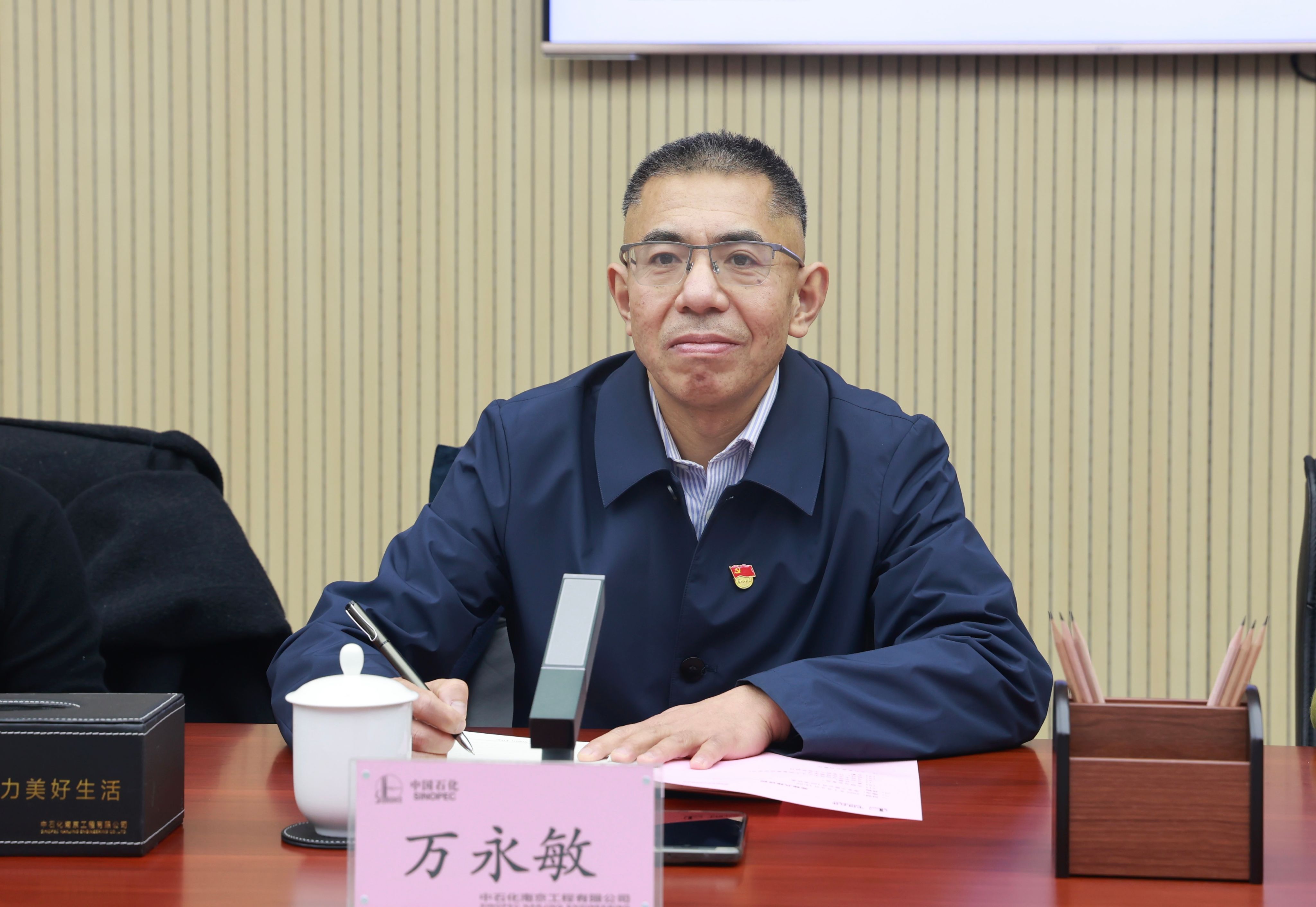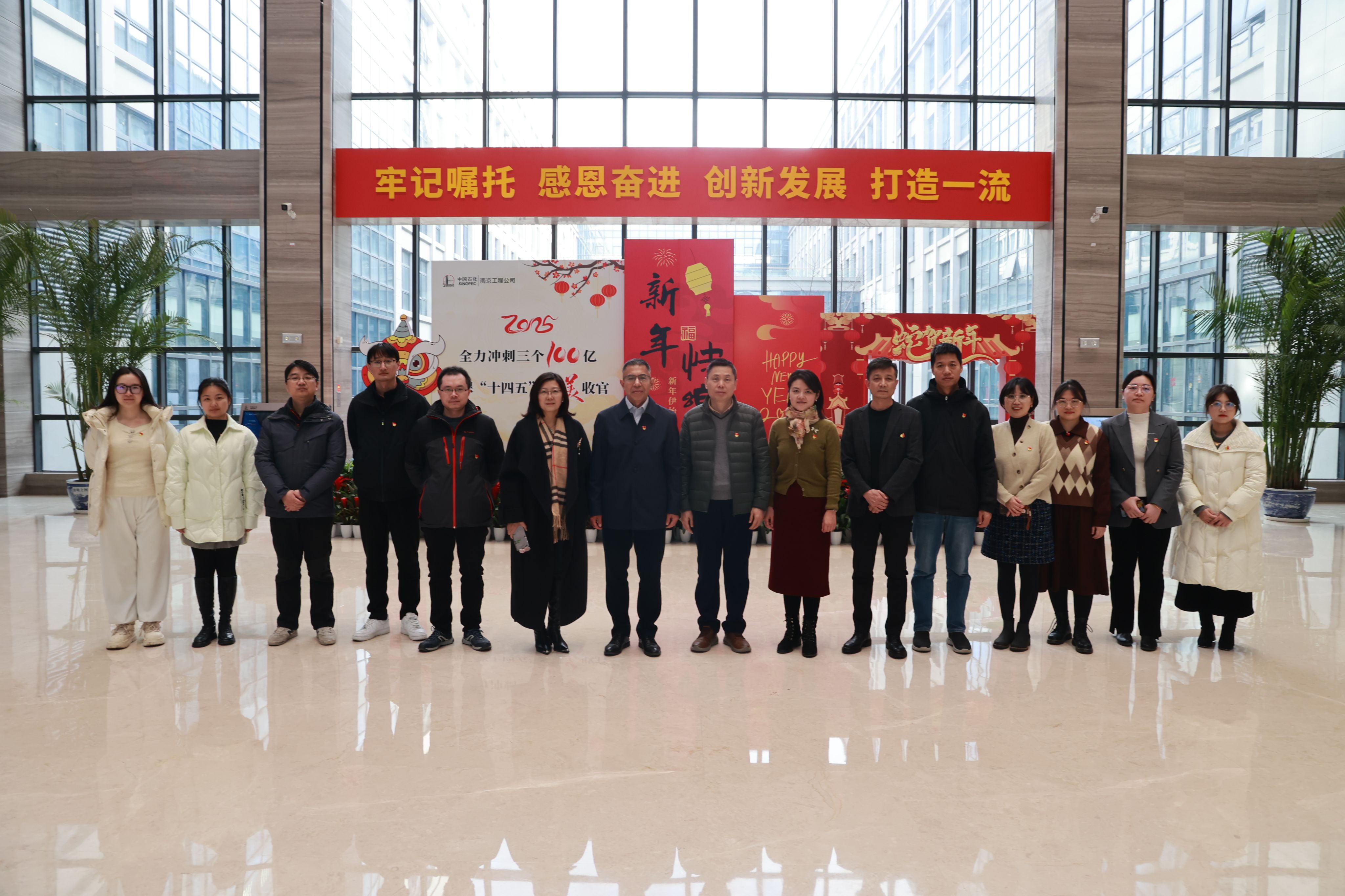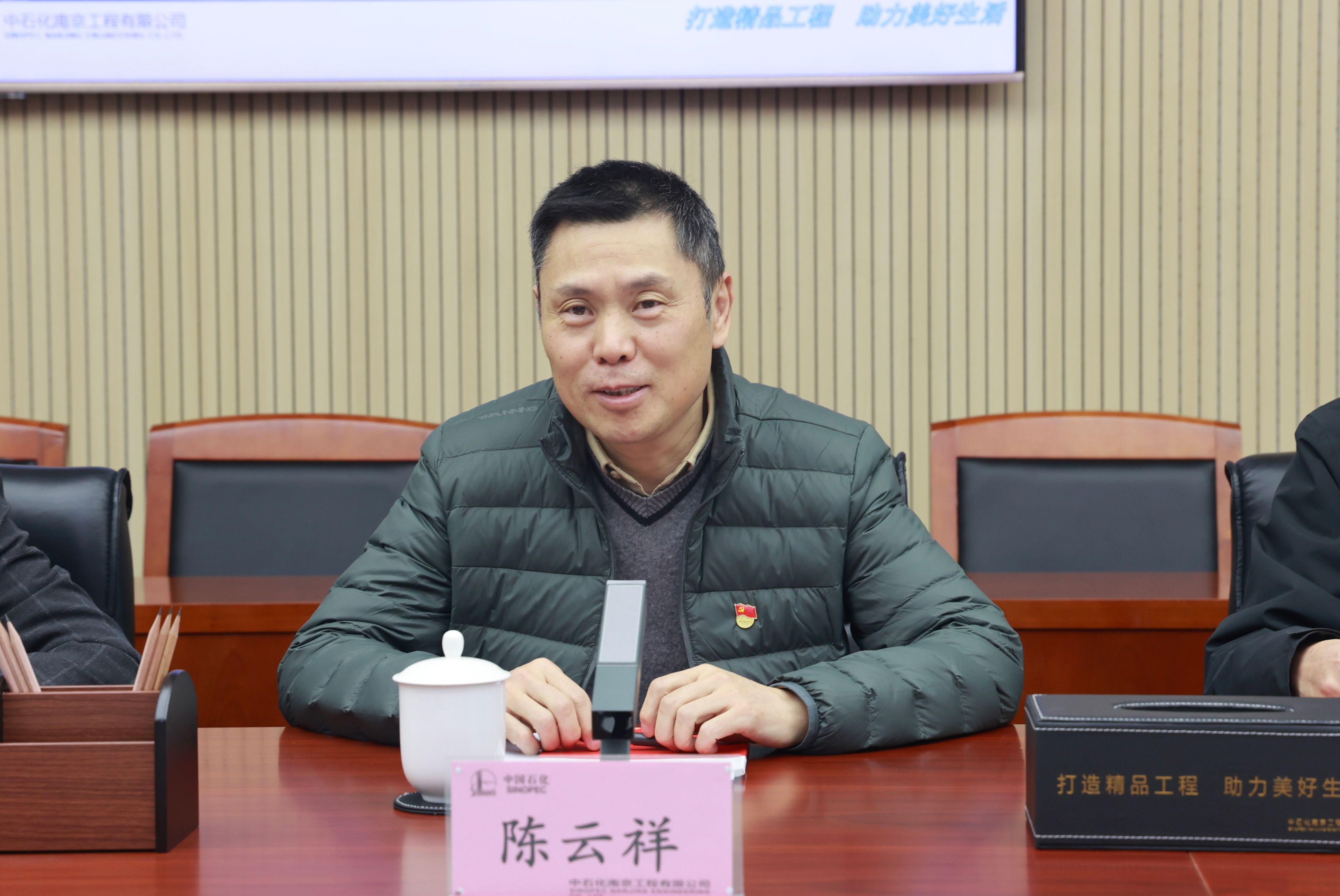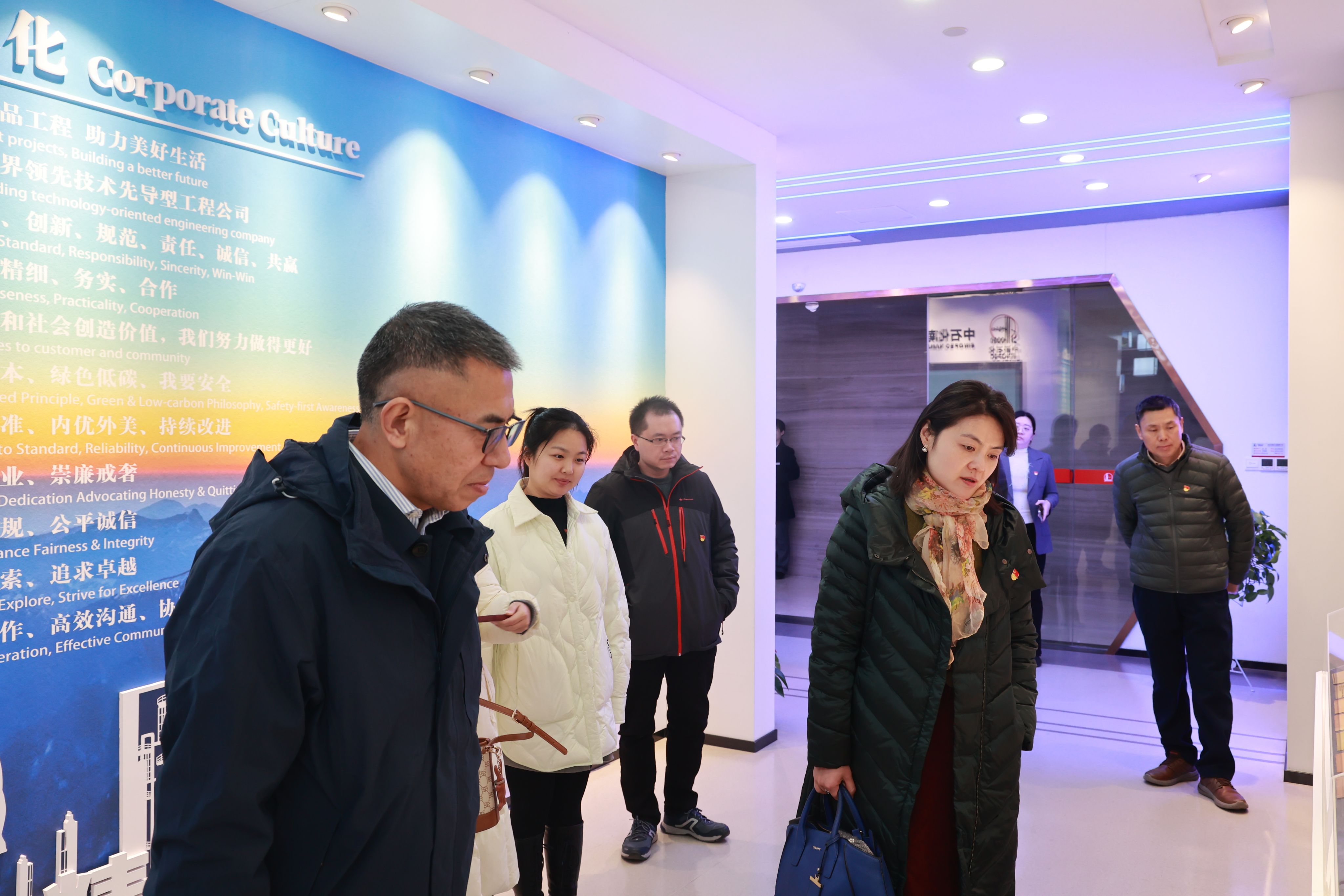 中石化南京工程有限公司党委组织部(人力资源部)党支部书记(部长)陈云祥对海外教育公司党总支书记万永敏一行的到访表示了热烈的欢迎。在研讨会开始之前,与会人员参观了公司的成果展厅。