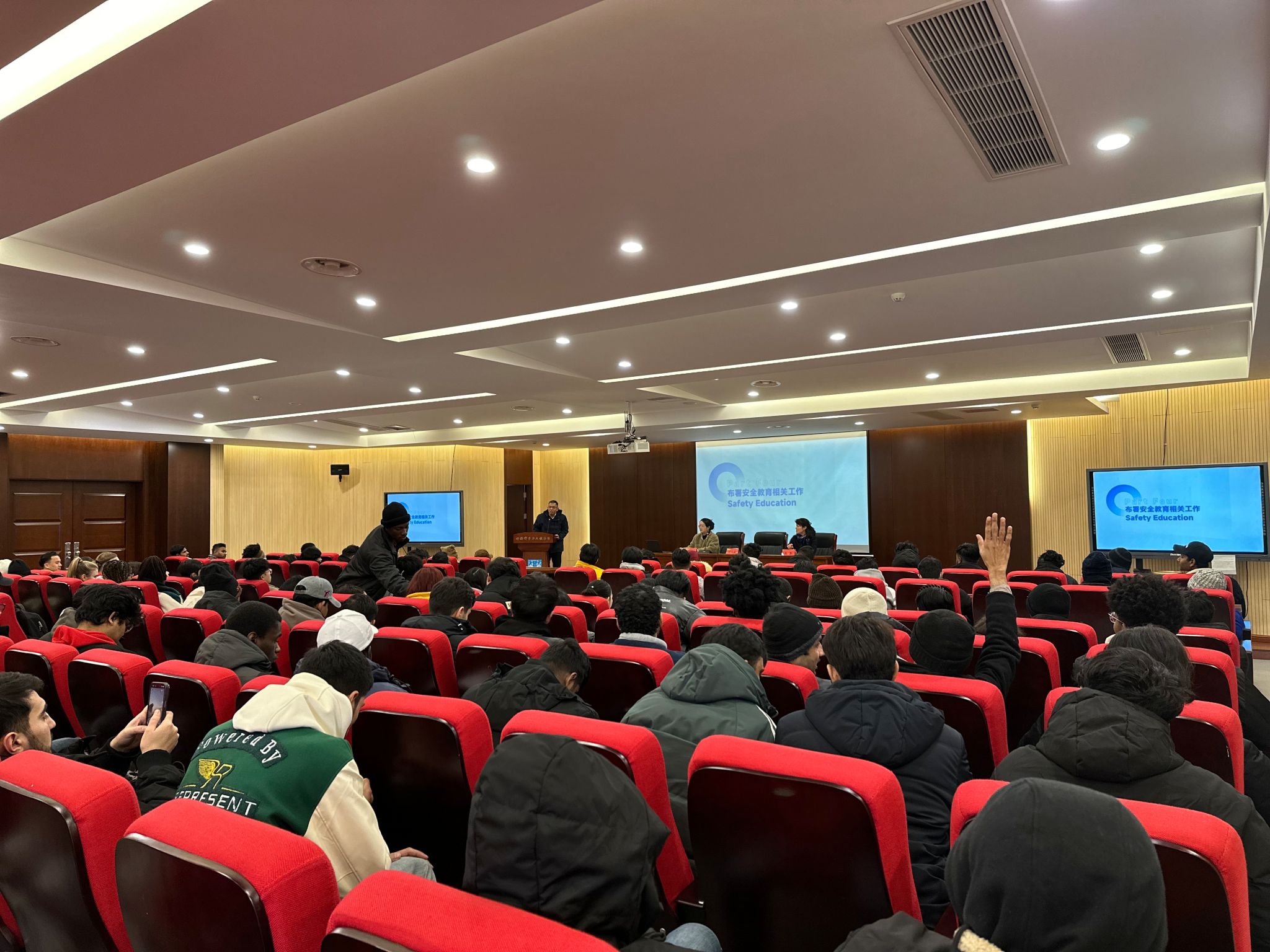首先,刘芸老师带领职工学习考场规则和违纪处分条例等相关规定,指导职工合理规划时间认真备考,严守考纪诚信应考,坚决杜绝作弊。朱丹副经理就宿舍安全、交通安全、网络安全三大方面对职工开展安全警示教育,重点强调、详细提醒职工们须时刻关注宿舍防盗、安全用电、防火安全、出行安全、人身安全、网络诈骗等诸多安全事项。最后,万永敏书记在总结讲话中指出,“人无信不可,民无信不立,国无信不威”,古今中外无论哪个国家,诚信都是做人之本。万书记与职工们分享了诚信的重要性与意义,他希望来华职工在中国能努力学习,诚信做人,实现梦想,努力成为推进共建全球命运共同体的参与者与贡献者。