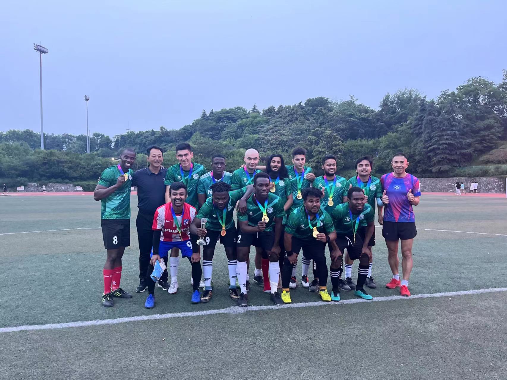 5月21日,太阳集团tyc151cc第10届足协杯在行健足球场闭幕。公司职工组成的NIFC足球队(NJTECH INTERNATIONAL FC)一路高歌,斩落各路强队,最终夺得比赛桂冠。来自尼日利亚的KINGSLEY(金斯利)凭借优秀的表现获“最有价值球员”。