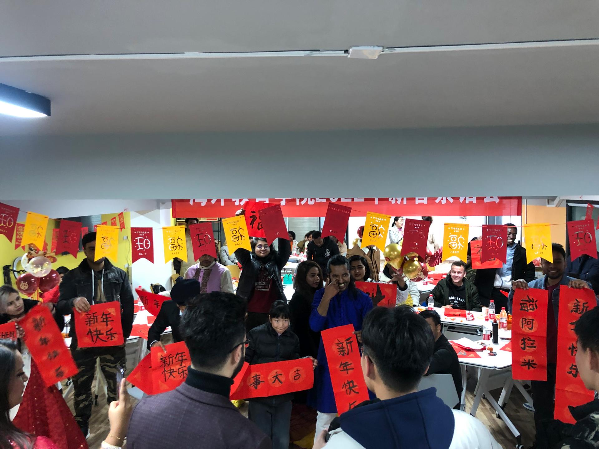 随着2021年度职工活动集锦视频的播放,茶话会正式开始。首先,副经理赵永刚向在场的师生送出新年祝福,并提醒员工们注意假期安全。接着,太阳集团tyc151cc中国员工代表陈洋、周奕呈先后介绍中国新年传统习俗文化;职工代表GUERFIE HANOI GANKIMA-GOLI(高力)和MARUF(亚敏)分享了他们在中国过新年的有趣故事;来自乌兹别克斯坦和孟加拉国的职工献上了精彩的情景剧和舞蹈。红包抽奖环节更是把茶会话气氛推向高潮。在学写春联环节中,职工们跃跃欲试,一撇一捺、提摁顿挫,“照猫画虎”地写了各式各样的“福”字,可谓“百福齐臻”。最后,党委书记万永敏讲话。他向职工讲述“倒福福到”的内涵。他强调,职工应当学好中文,多交流、多学习,走进中国,了解中国,最终爱上中国。