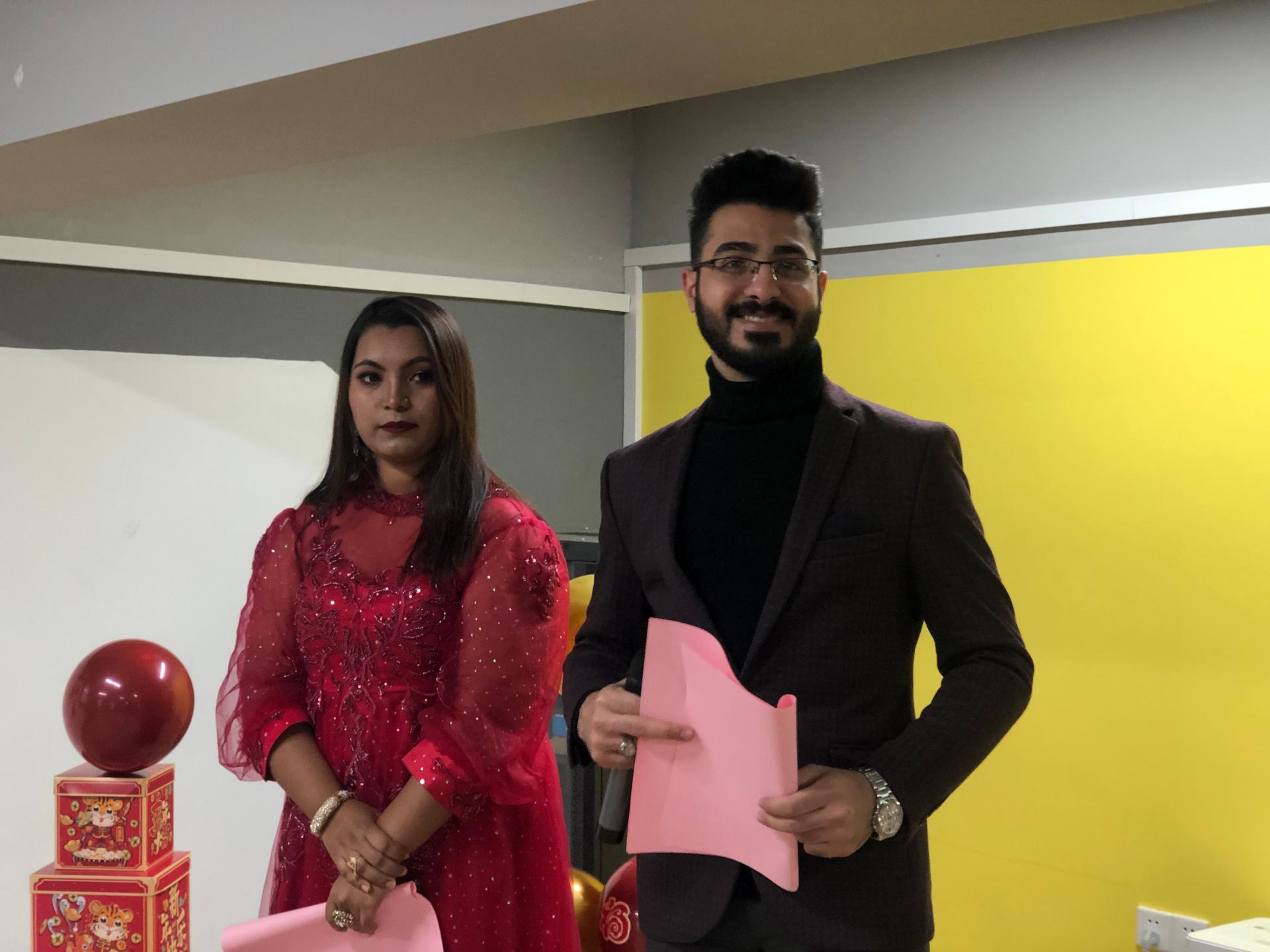 1月13日下午,太阳集团tyc151cc2022年新春茶话会在明远楼“一带一路”化工人文交流中心举办。公司党委书记万永敏、副经理赵永刚、公司管理团队以及中外员工代表们参加。茶话会由来自伊拉克的JAAFAR IMAD FADHIL(佳法)同学和来自孟加拉国的MST ZANNATUL AZMIRA RUMKI(阿萨米拉)同学共同主持。