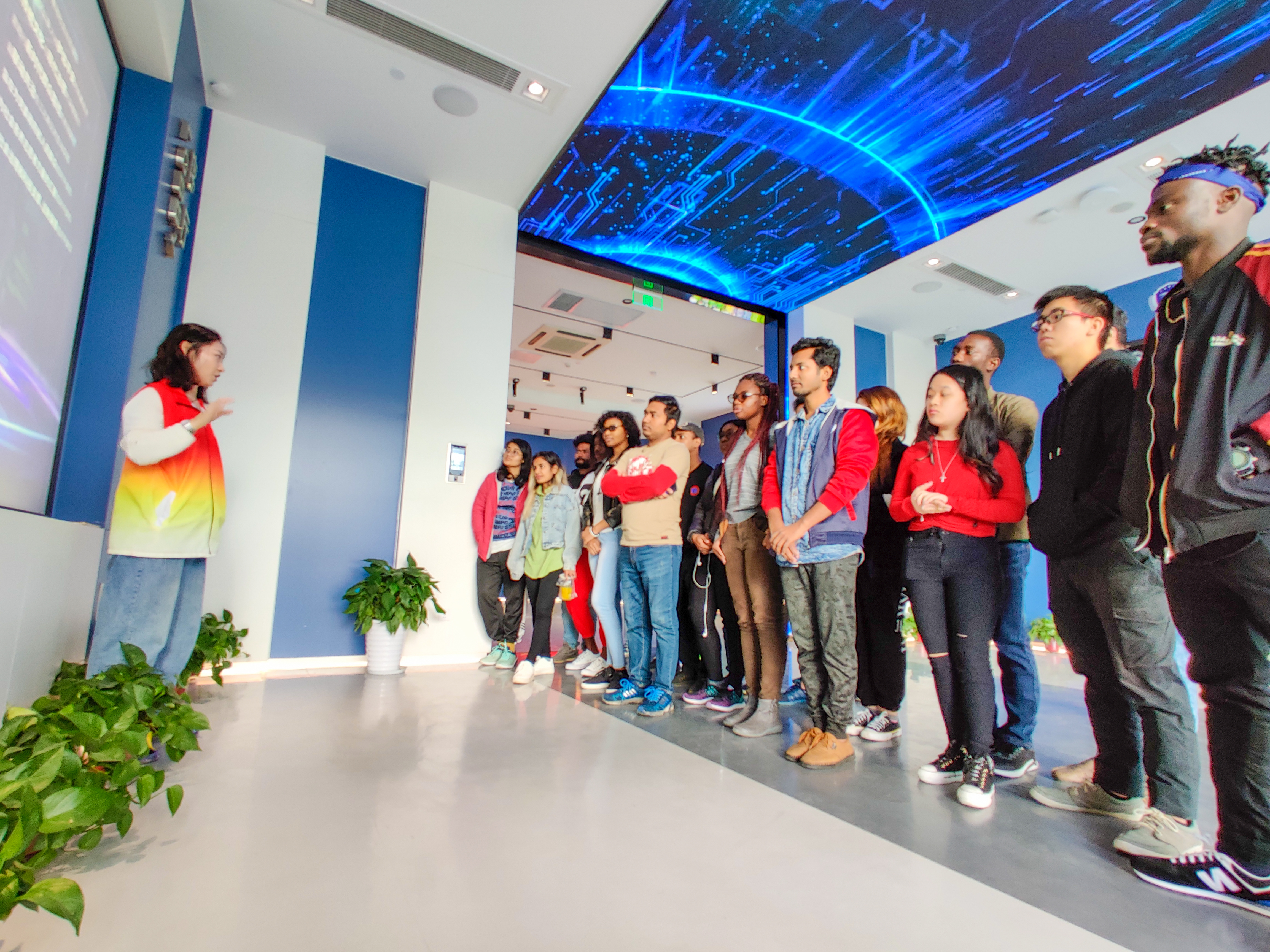 本次体验活动以情景式的教育方式为主,在讲解员的带领下,同学们先后参观了“智慧安防”、“逃生救护”、“天下无毒”、“平安出行”、“全民反诈”、“未来已来”主题展馆及体验区。模拟仿真的场景,明确清晰的介绍,趣味互动的体验和生动视频的展示,使职工跨越语言的局限,将安全防范知识入脑、入心,体验了一堂生动的公共安全教育课。来自加纳的Michael表示,安全主题的实景体验给他很大的震撼,“逃生救护主题”中的VR体验让他模拟了如何在火灾中正确逃生,这样的形式对于他们外国员工学习安全知识很有用,很生动。
