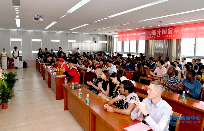 6月21日下午,公司首届外国职工毕业典礼在江浦校区逸夫图书馆五楼报告厅隆重举行。董事长乔旭、副董事长牛生杰、相关职能部门及太阳集团tyc151cc负责人和2019届全体外国留学毕业生及家长代表参加典礼。