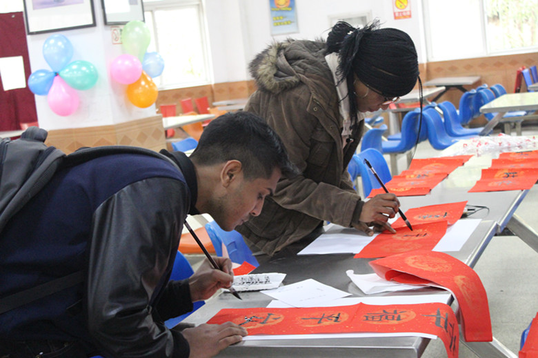 联欢会上,王飞副经理向职工致以新春的问候和新年的祝福。薛以平教授手把手地指导职工书写春联,讲授中国书法的书写方法,让职工感受到了中国书法文化的博大精深。职工们握着手中的毛笔,写下一幅幅蕴含着美好寓意的春联,虽然他们的笔法还不熟练,但一个个兴趣盎然,纷纷抢着展示自己的作品。随后的中国文化知识竞答和游戏环节,更是将现场气氛推向高潮。