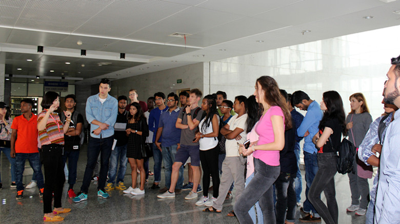 图书馆孙超老师和陈萱老师为职工介绍了公司图书馆的电子资源和纸质资源概况,并详细讲解了图书借阅和归还流程,以及图书馆相关管理规定,指导职工学习使用图书馆资源。在第二和第六英文图书阅览室,职工兴致盎然,翻阅书架上陈列的英文书籍,并观看图书馆发展历史短片。针对外国职工特点,陈萱老师全程使用英文讲解,并佩戴扩音设备,确保每一位职工都能听到介绍内容。职工们还参观了位于图书馆二楼的创客梦工厂智能制造、智能控制、虚拟仿真、节能减排、文化创意等区域,每到一处,都有中国同学向职工介绍自己的研发作品和正在开展的创新活动,交流互动场面热烈。