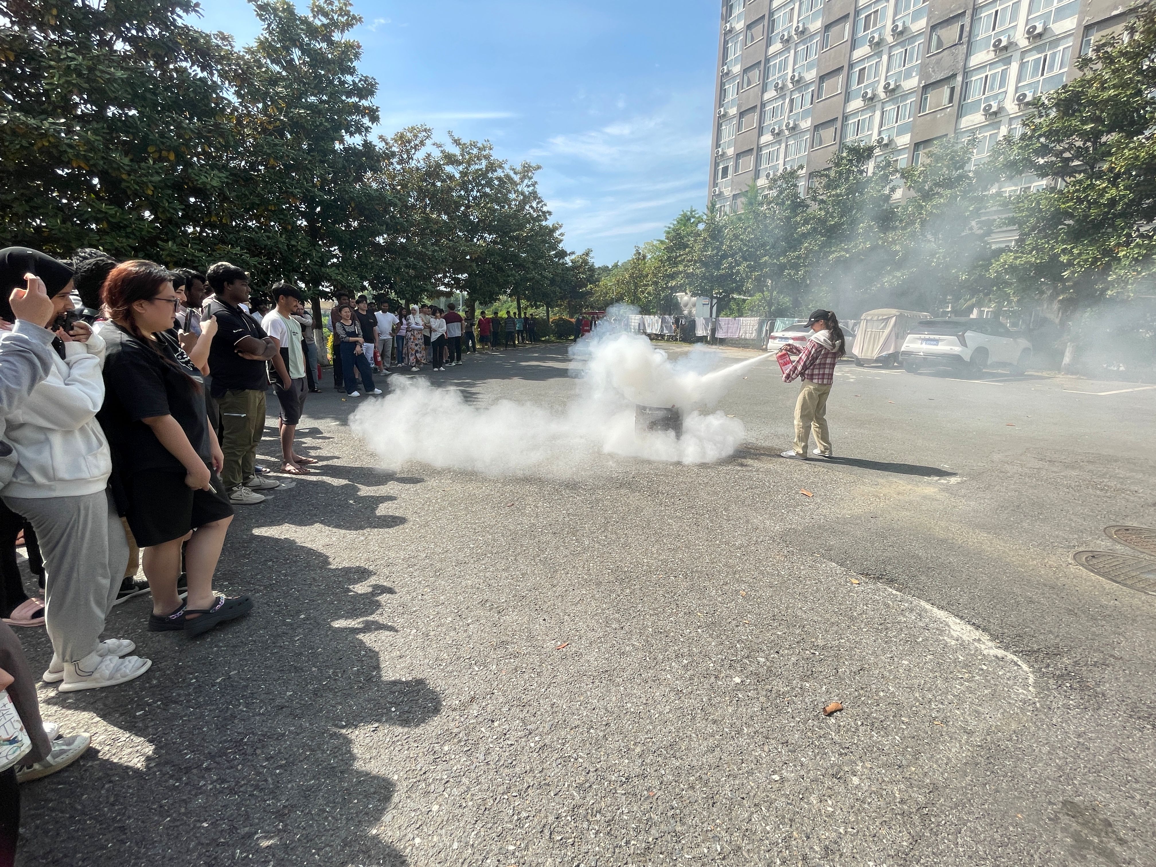 疏散演练结束后,保卫处刘世伟老师为职工详细讲解了灭火器的使用方法和注意事项,并组织职工们进行灭火器实地操作。现场职工热情高涨,纷纷前往体验,在实际操练中掌握了灭火器的使用方法。