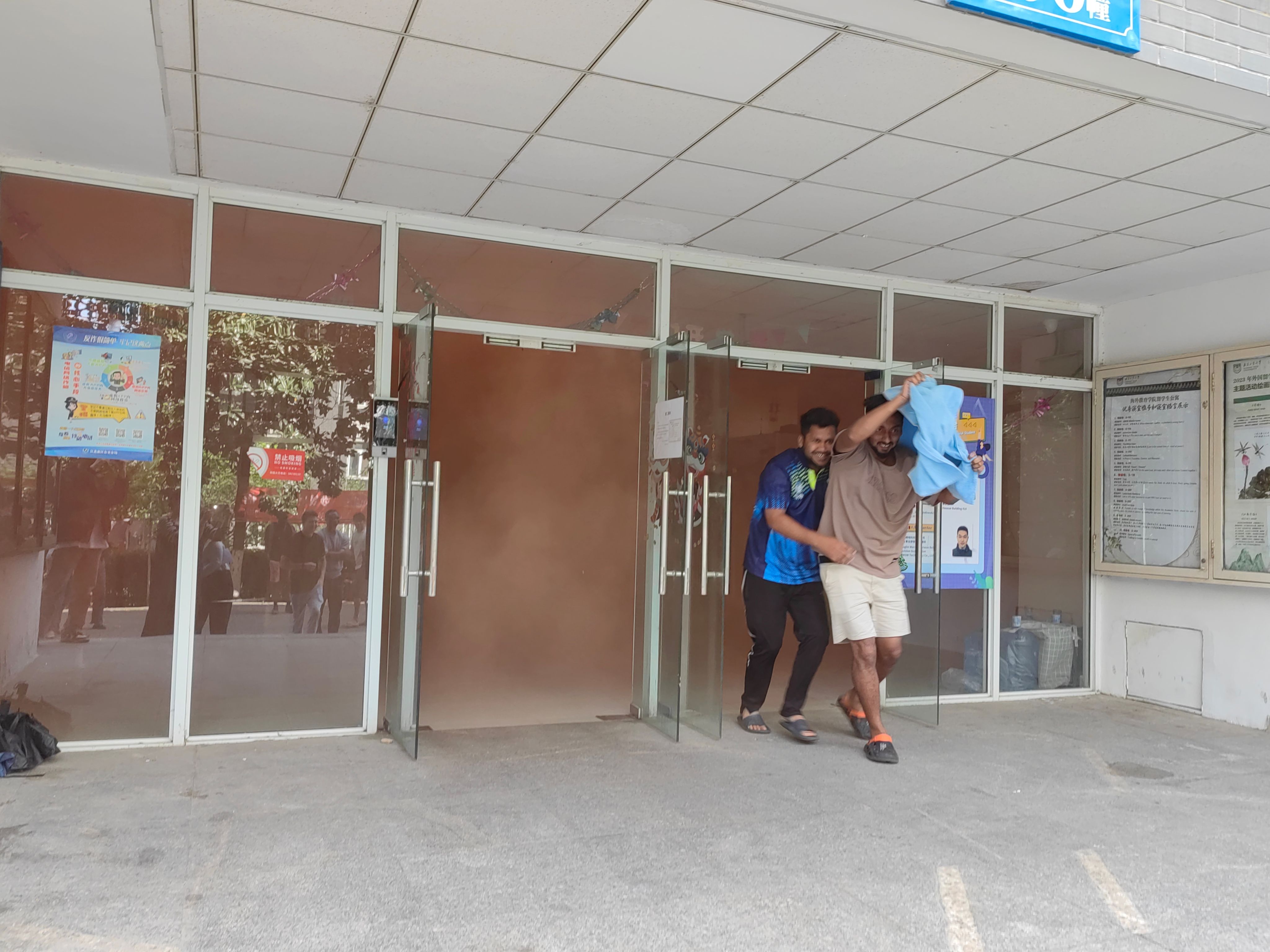 下午14:30,警报响起,烟雾弥漫。职工们纷纷捂住口鼻、低头弯腰,有序地从楼梯撤离现场至景星苑一楼集合点。楼内职工志愿者按照预先的消防演习要求疏散引导员工,保证大家有序撤离,以免慌乱中出现拥挤或者踩伤员工现象。整个过程用时短暂,展现出职工们良好的应急反应和团队合作精神,达到了预期效果。