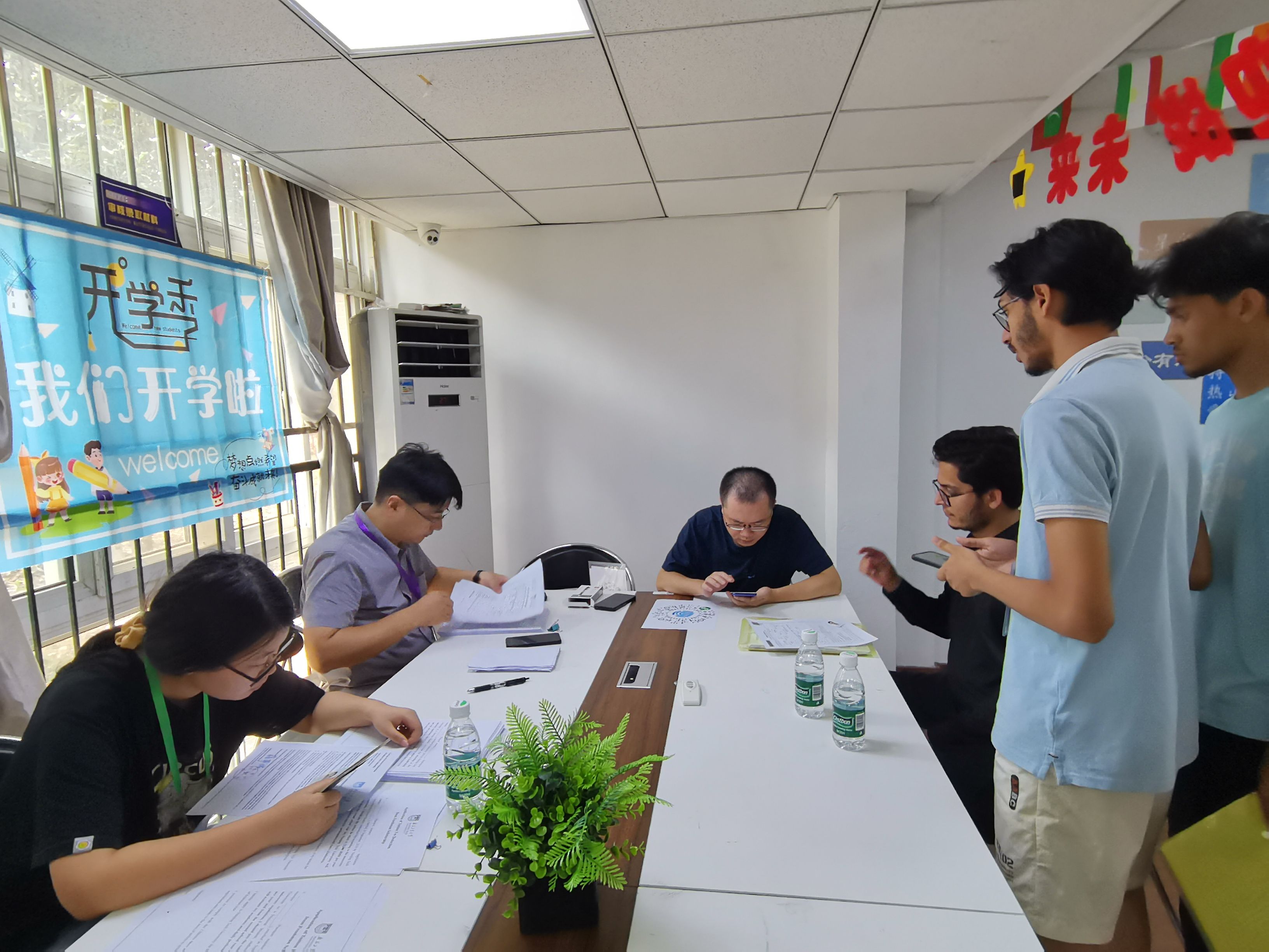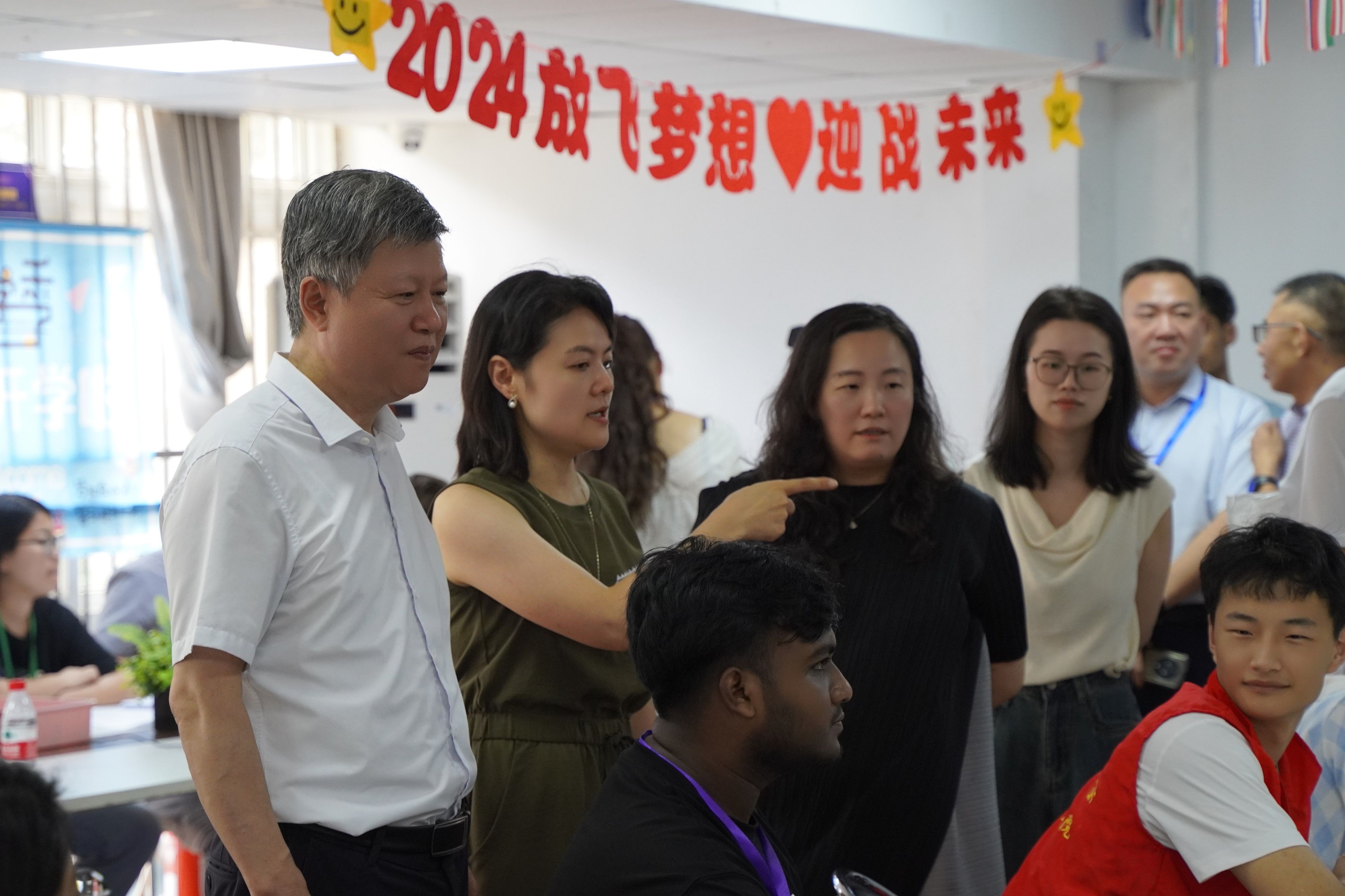 “热心”迎接,营造温馨入校氛围。六十余名中外员工志愿服务队,以饱满的热情和温暖的笑容,迎接每一位踏入校园的新面孔,帮助新生办理材料审核、学费缴纳、保险办理、住宿登记等一系列手续,提供了清晰、快捷的指引。