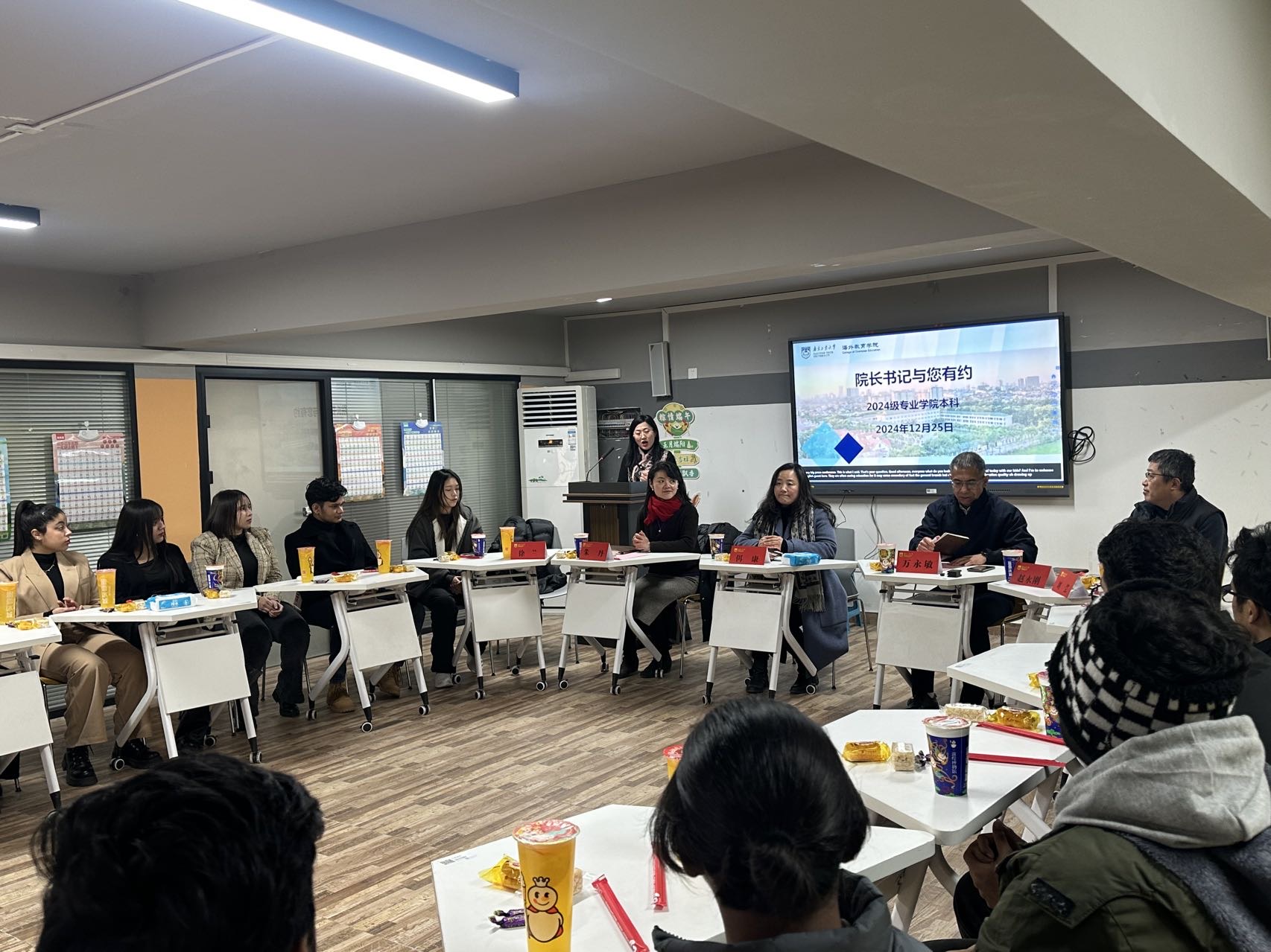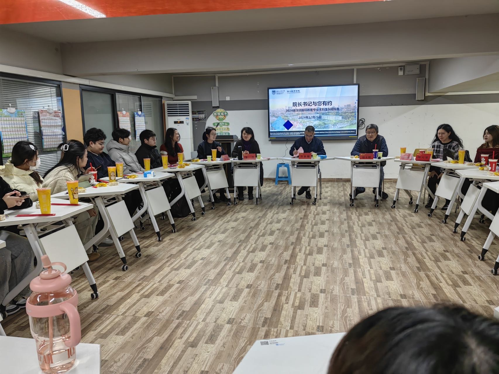 12月25日下午,太阳集团tyc151cc在“一带一路”化工与建筑行业中外人文交流院召开了两场“书记经理与您有约”汉语学习的乐与难专题座谈会。公司党总支书记万永敏、经理佴康、副经理赵永刚、副经理朱丹、汉语教师代表、辅导员代表与59名来华留学新生代表面对面,围绕新生“汉语学习的乐与难”展开充分的交流和探讨。