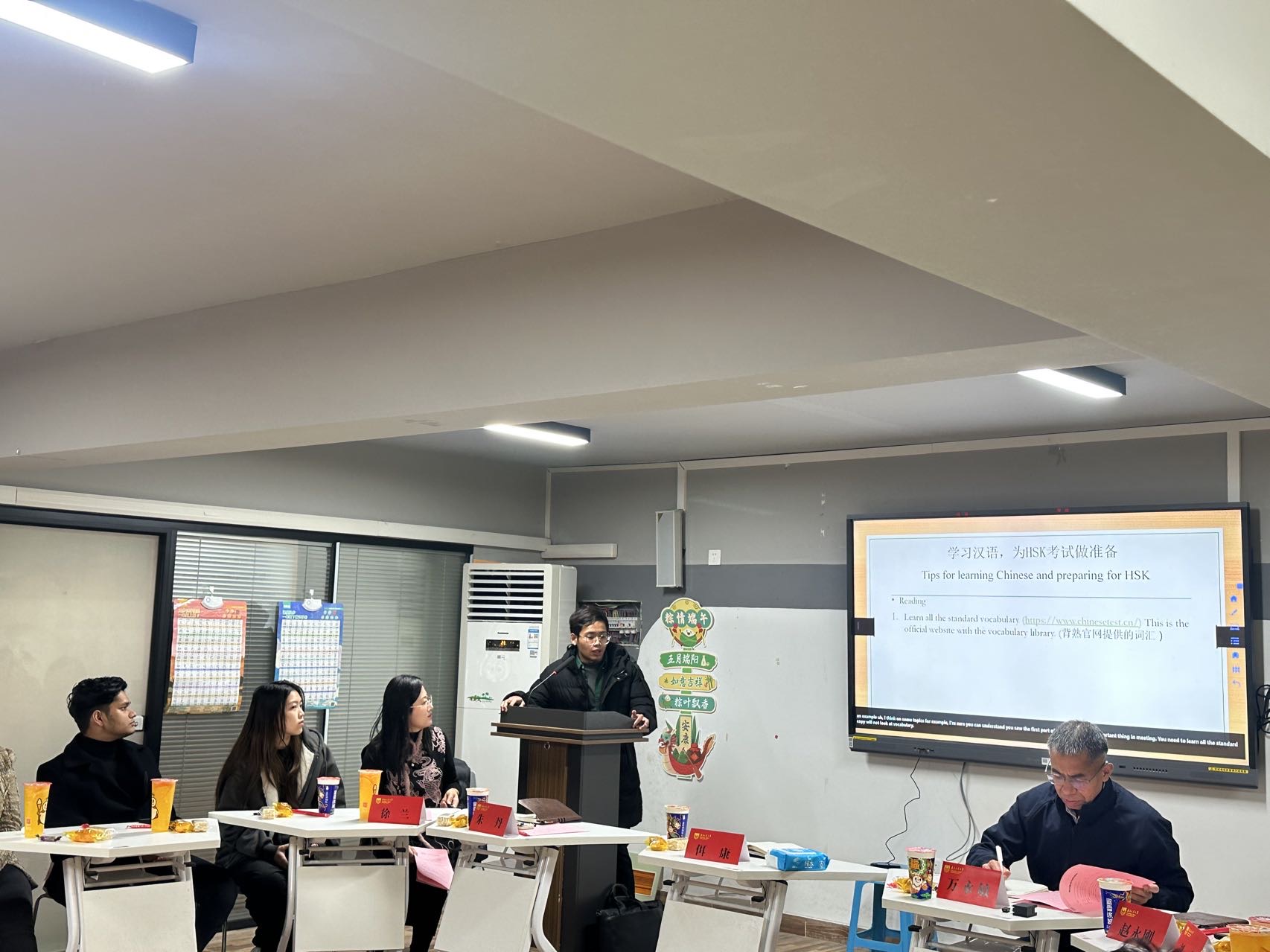 第二场座谈会上,来自汉语国际教育专业的29名新生们进行了自我介绍并分享了他们在汉语学习中的心得体会及遇到的困难。来自泰国的黄霞晖同学说:“我们很害怕进行中文对话,怕生词不会,发音不对,语法不对。”针对这些问题,汉语教师们进行了现场解答和交流,鼓励职工们多与中国员工交流互动,积极参与各类文化活动,不断提高汉语水平。