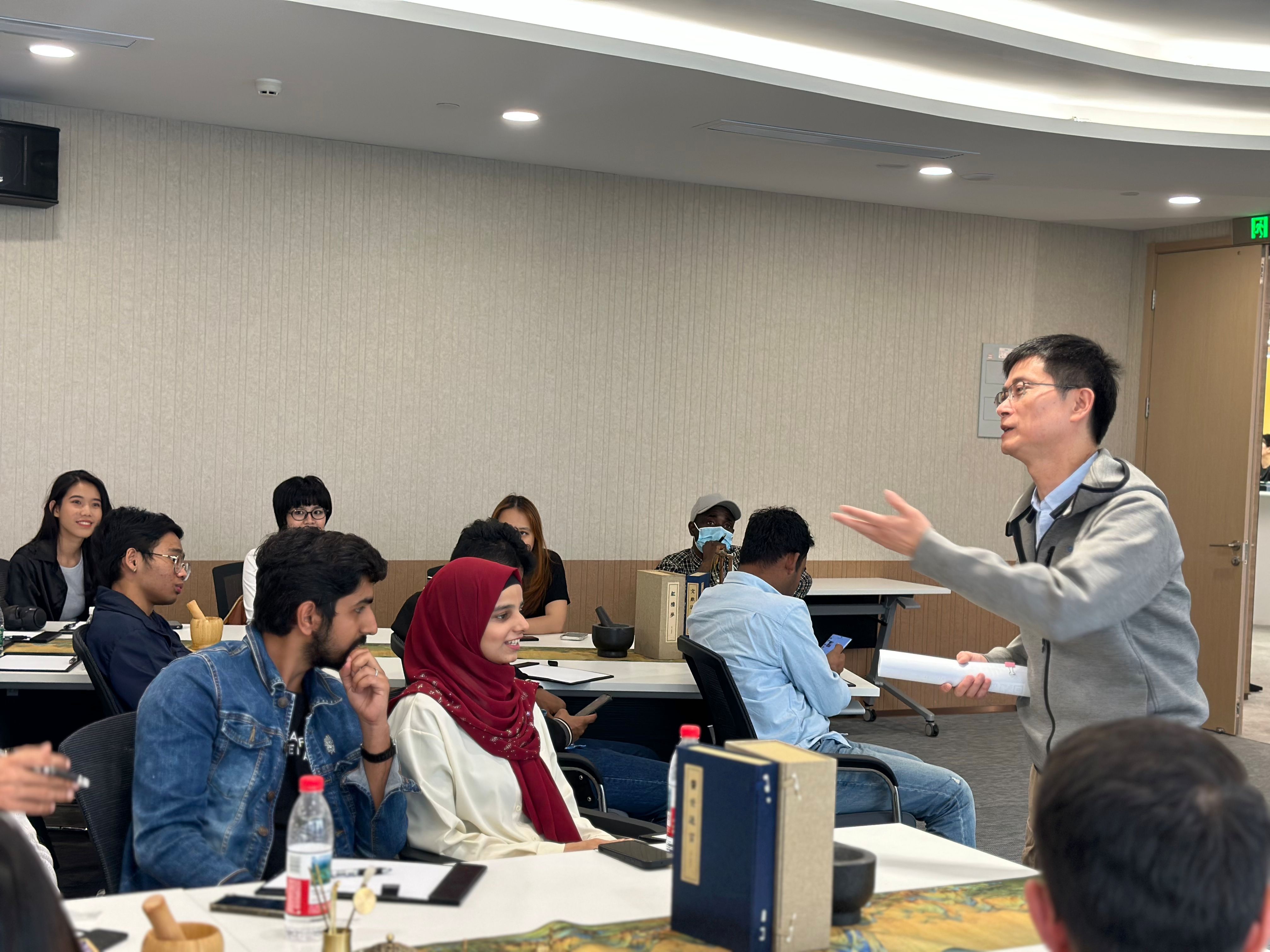 下午3时,职工们在产业园展厅开启探索之旅。现代化的办公环境、繁忙的业务场景以及琳琅满目的跨境商品,员工们直观地感受到了跨境电商产业的活力与潜力。第一节课程聚焦于跨境电商。专业讲师通过生动的案例和详实的数据,向职工们介绍了跨境电商的运作模式、市场趋势以及中国在全球跨境电商领域的领先地位。职工们认真聆听,积极互动,踊跃提问,课堂气氛热烈。短暂休息后,第二节课程转向中国传统文化体验。在专业老师的指导下,职工们学习了中医的基本理念,并亲手制作中药香囊。他们将艾叶、薄荷等中药材装入香囊,感受着传统中医文化的独特魅力。来自巴基斯坦的职工王子兴奋地说:“虽然这与跨境电商看似无关,但这种文化体验让我更全面地了解了中国。跨境电商不仅是商品的流通,也是文化的交流。”