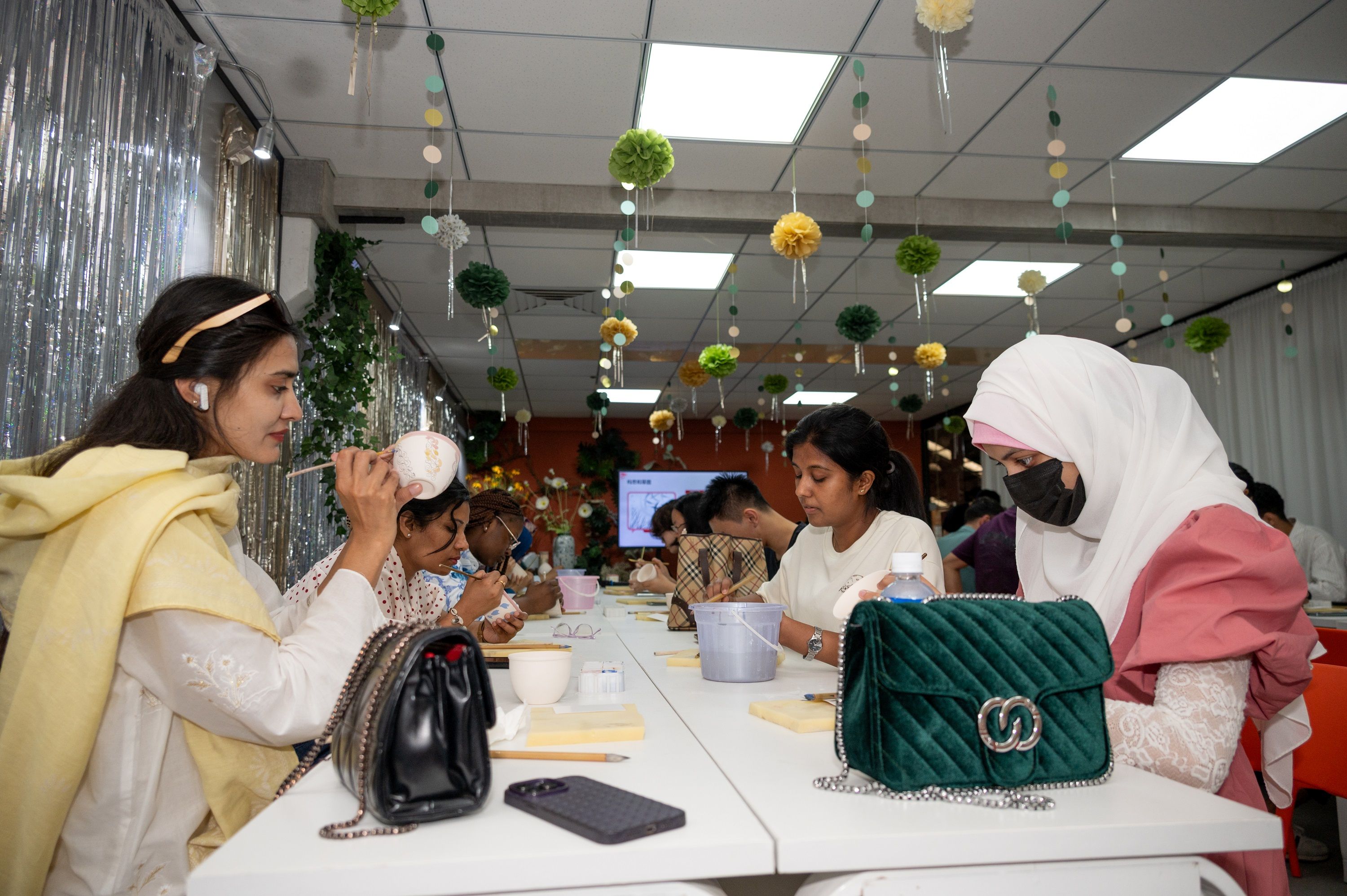 在青花瓷陶艺中心,硕博士们展开中国陶瓷文化发展与国际传播的学习与实践。职工们首先参观了青花瓷主题展馆,了解了中国青花瓷的历史渊源、图案意蕴、釉下彩等传统工艺;同时生动直观地了解了中国青花瓷贸易以及文化在世界各区域的传播。展馆陈列的多件精美瓷器生动诠释了“器以载道”的中国文化理念,令在场员工深感敬佩。职工们还在专业老师的指导下,进行了陶瓷釉下彩DIY体验。同学们在素胚之上勾勒出喜爱的图案,为传统瓷器增添国际化、个性化创新气质。这一实践不仅锻炼了大家的动手能力,也让他们对中国非物质文化遗产的独特魅力有了更个体的理解与感受。