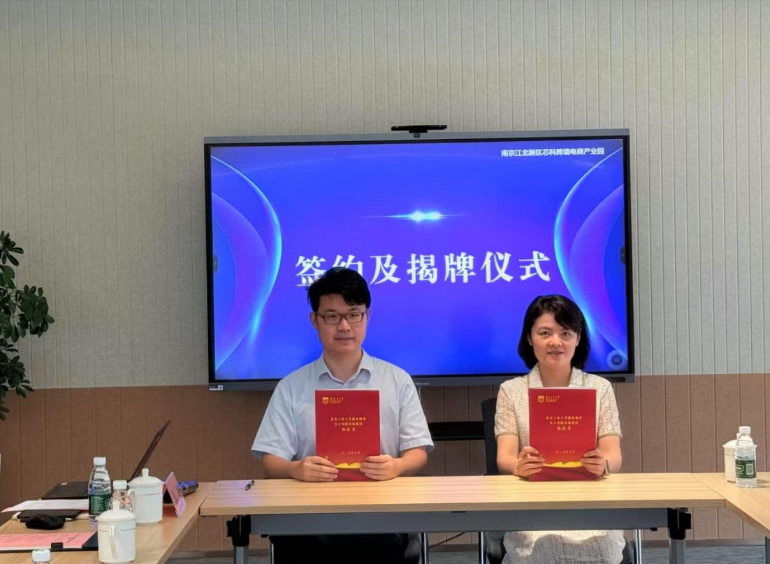 随后,太阳集团tyc151cc副经理朱丹与江北新区科投集团招商中心副主任高阳签署基地共建协议书;公司党总支书记万永敏与科投集团副总经理戴慧共同为“太阳集团tyc151cc就业创业实习实践基地”揭牌。双方围绕职工实习实践、跨境电商人才培养、创新校企合作模式等议题展开深入探讨,并就暑期跨境电商直播实训活动的具体安排做进一步商议。