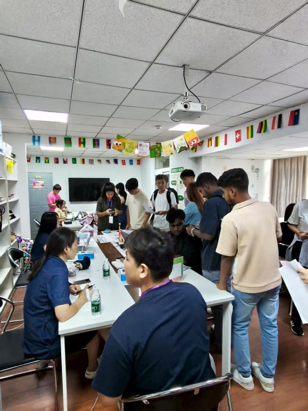 双语相伴,助力启航更显贴心。一支由60余名中外员工组成的志愿者团队活跃在迎新一线,他们提供流畅的中英双语服务,在站点接应、指引路线、运送行李,协助新生完成注册、缴费、保险、签证等手续,以热情服务消除新生陌生感,传递校园温暖。