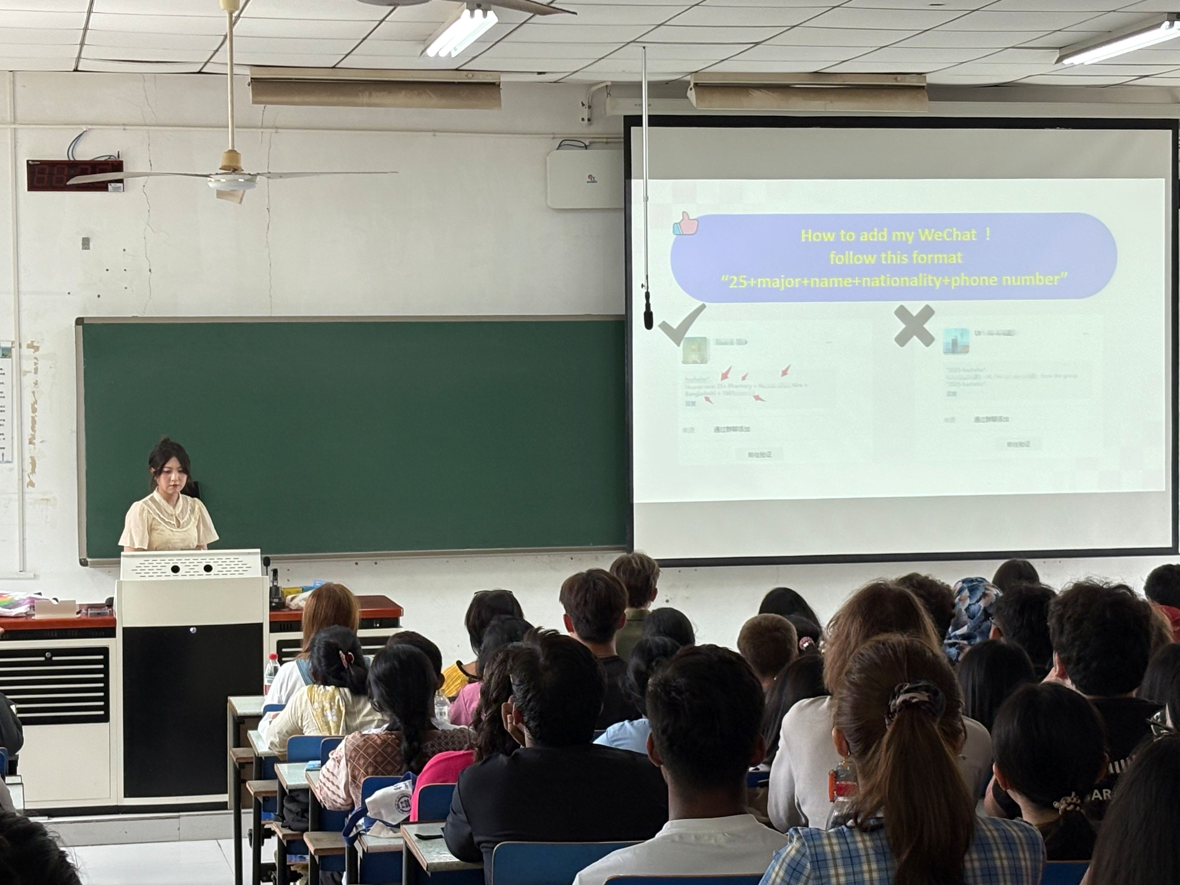 无规矩不成方圆。9月12日,公司组织全体新生参加“校规校纪与生活指南”讲座。留管办辅导员邢露萍老师围绕《来华职工手册》和《员工生活指南》,对签证管理、住宿规定、学术诚信、校园设施使用等重点内容进行了详实清晰的解读新生尽快适应和融入校园生活奠定了基础。
