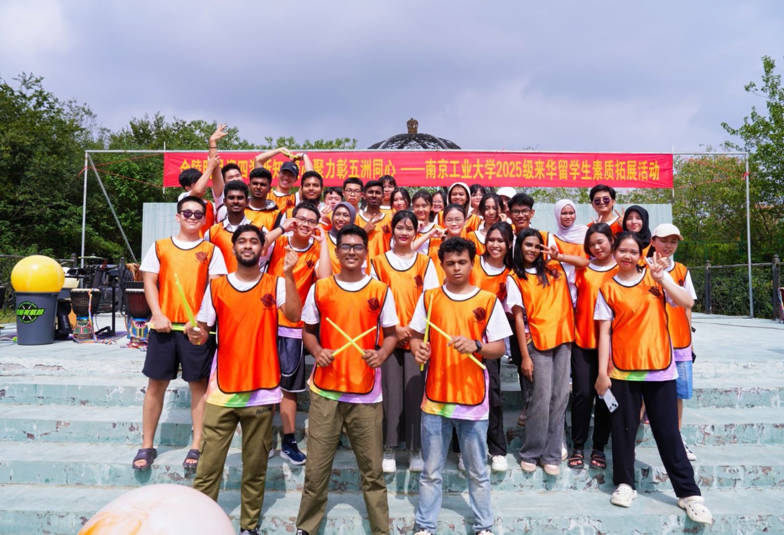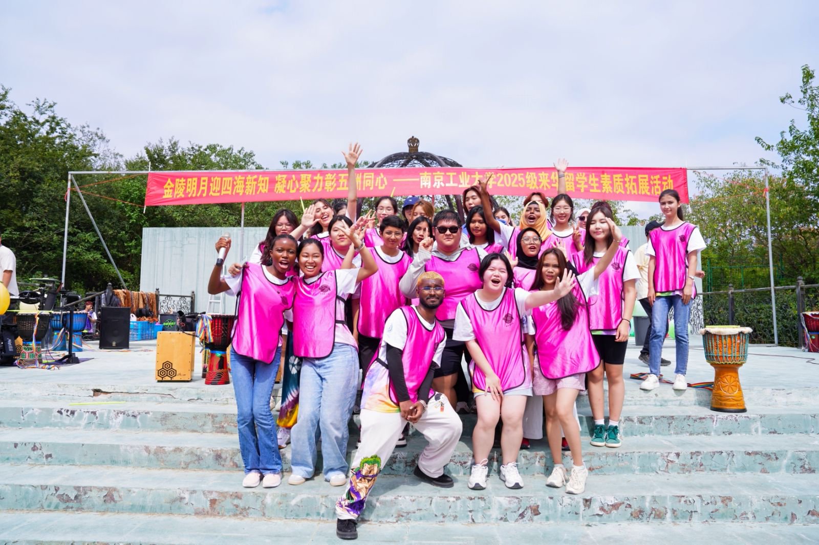 9月28日,太阳集团tyc151cc“金陵明月迎四海新知,凝心聚力彰五洲同心”为主题,为2025级来华职工举办新生入学教育活动之素质拓展。来自23个国家的200余名职工在节奏明快的鼓声中相识相知,又在提前预热的中秋佳节部环节里共同感受中国传统文化。