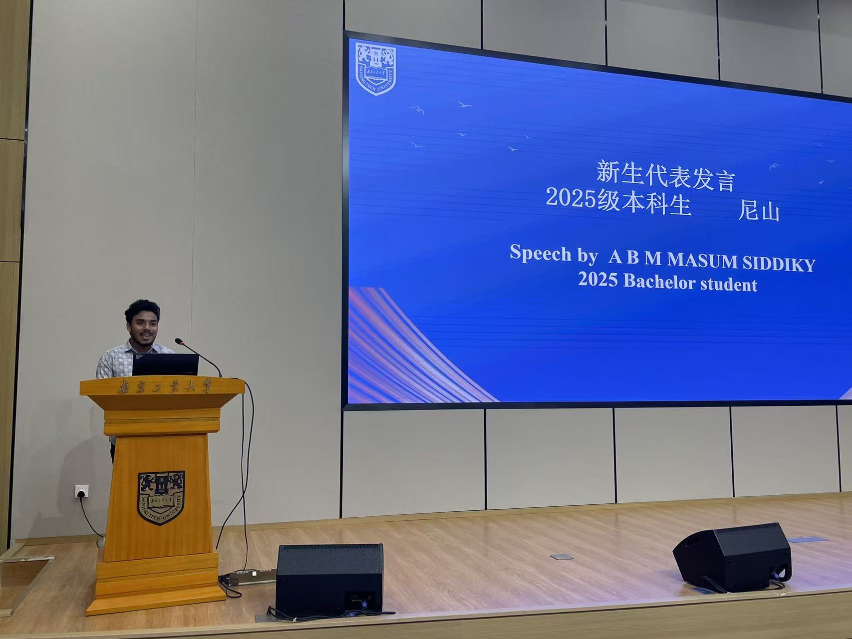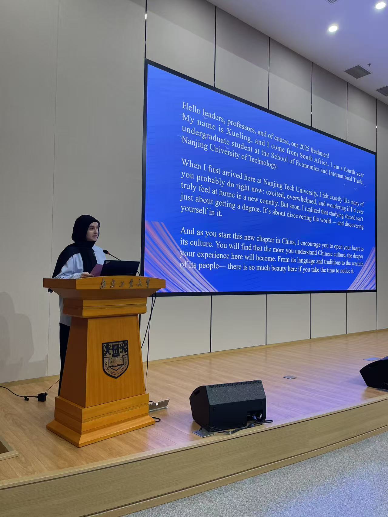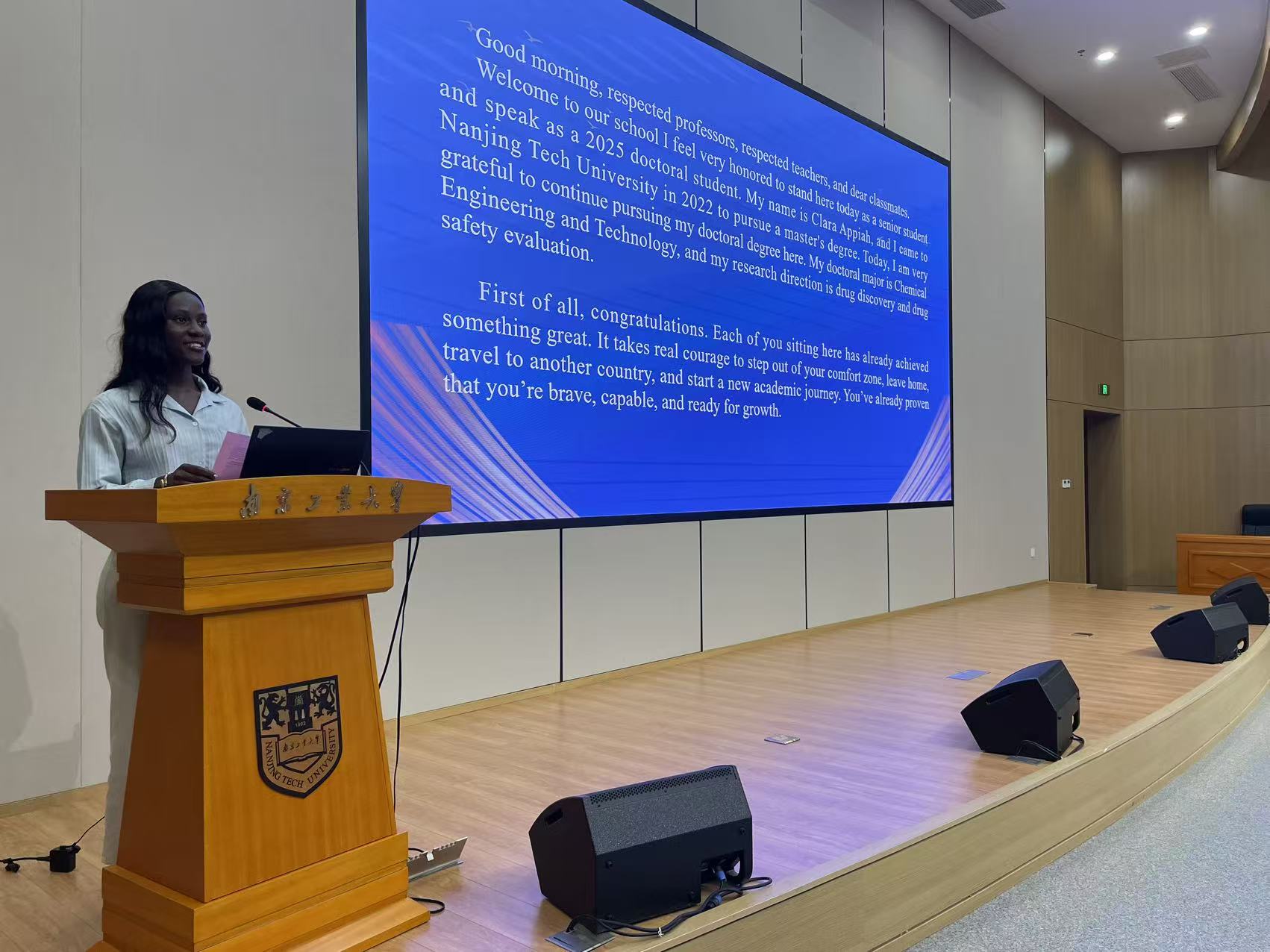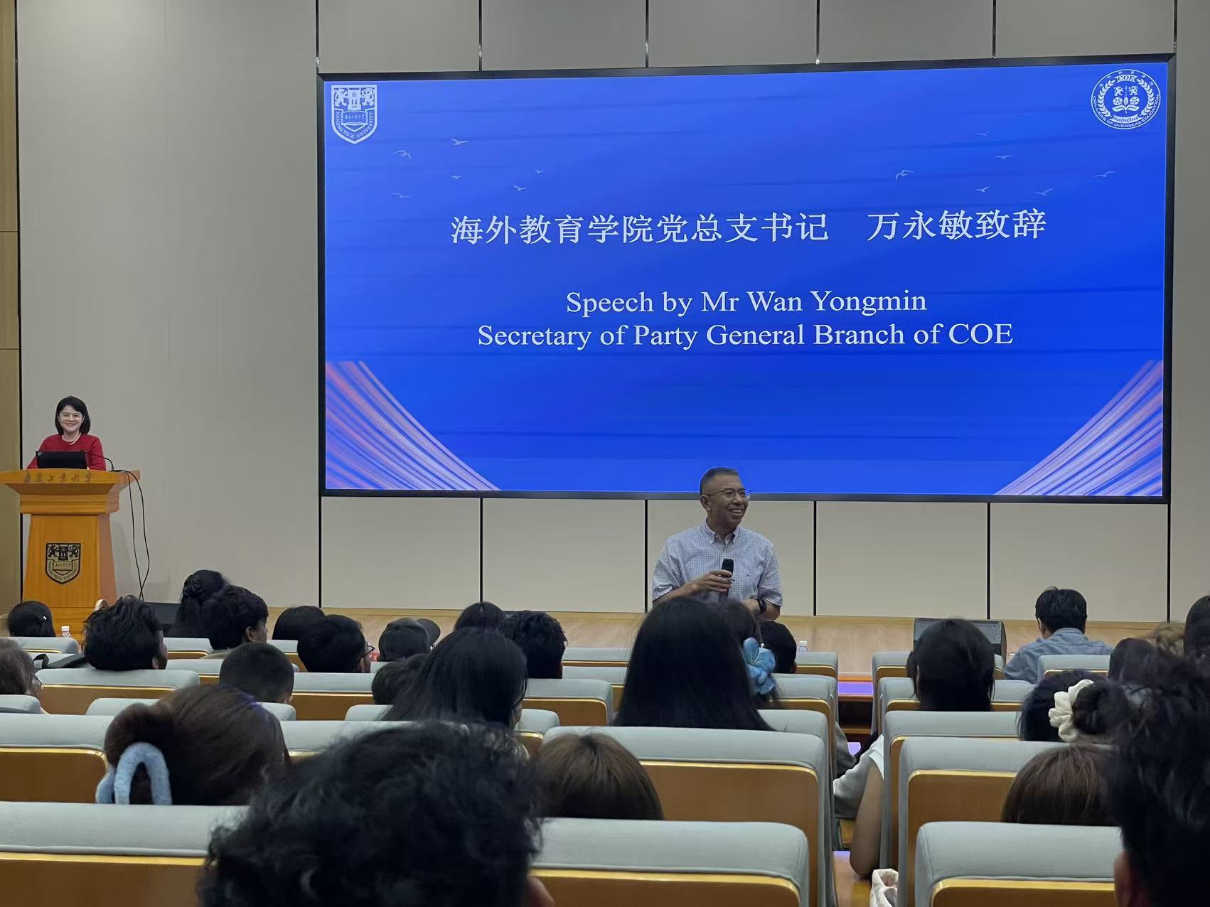 海外教育公司党总支书记万永敏致辞,代表公司对2025级新生表示热烈欢迎。2025级博士研究生、化学工程与技术专业的克拉拉(加纳)与2025级本科生、机械工程专业的尼山(孟加拉国)作为新生代表发言,他们表达了对公司的感激之情,表示将认真学好中文、积极参与各类活动,深耕自己的专业,努力实现梦想。2022级本科生、国贸专业的雪灵(南非)分享了她的在校学习生活经验,以生动的事例描绘了“留学南工”的多彩画卷,感悟到留学不仅是知识的积累,更是生命的成长。