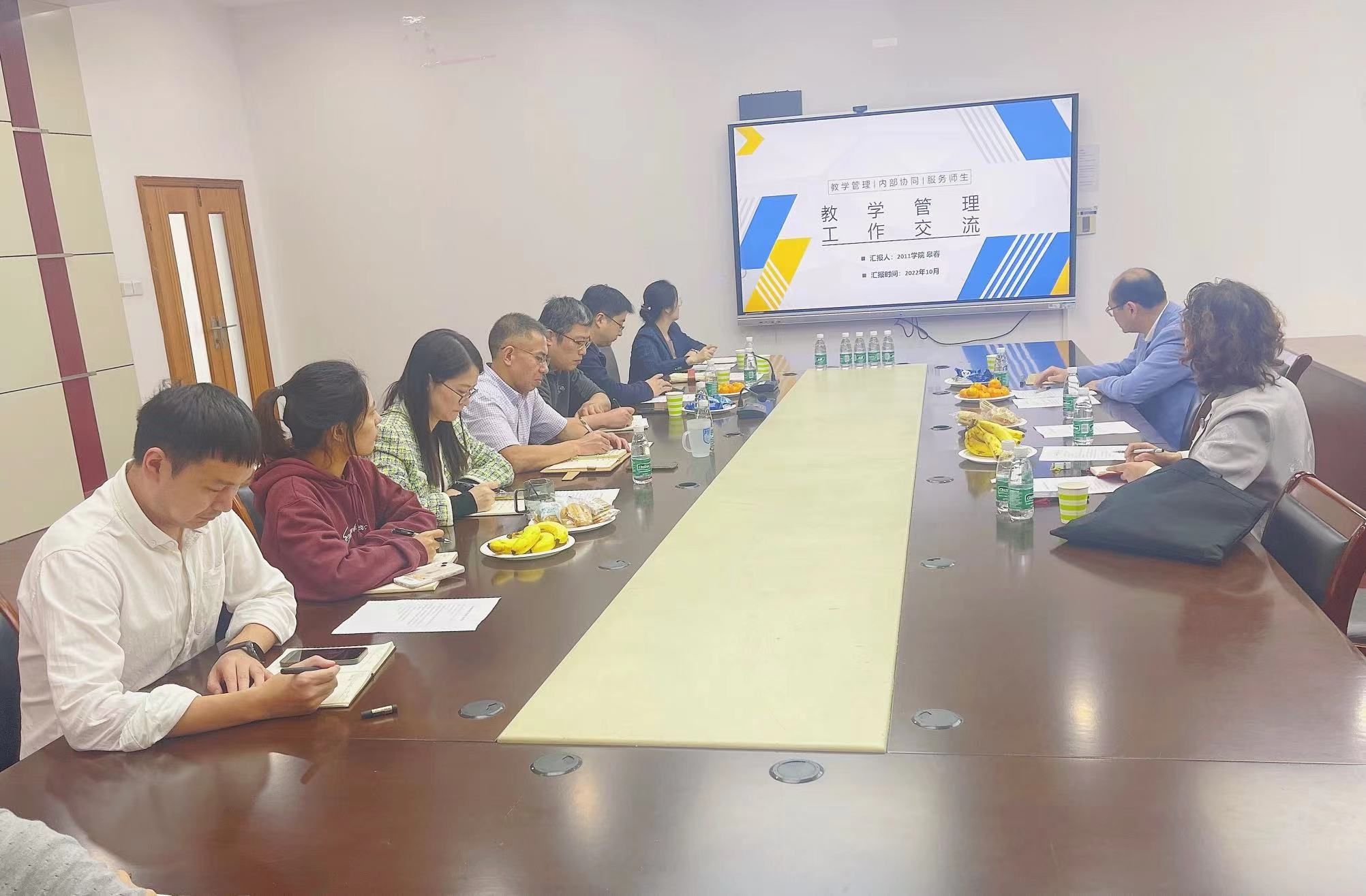 皋春副经理介绍了2011公司“两制三化”(全员书院制、全程导师制,小班化、个性化、国际化)办学特色,指出管理者要提高站位,做教学管理的明白人、有心人、勤快人,内部协同各岗位加强人才培养,服务师生从关爱员工一杯水、服务老师一张凳细微处着手。温晋锋教授从研究者角度出发,以《被看见--2011公司面向未来的实践与探索》分析了2011公司教学管理的理念和实操,并对公司发展提出了思考和建议。韦萍教授分析了2011公司和太阳集团tyc151cc特点,在肯定太阳集团tyc151cc中外合作办学成效的基础上,建议公司积极借鉴2011公司优秀管理经验,深挖自身潜力,勇于开拓创新,探索适合公司发展的新机制。