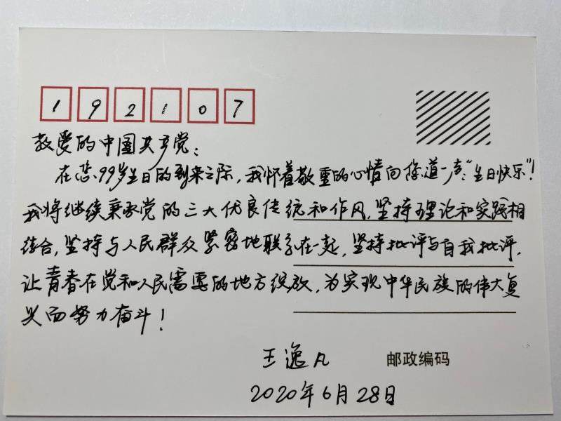 党支部成员积极参与,率先垂范,通过“以声载情,唱首红歌给党听”、“纸短情长,手写贺卡送祝福”、“巧思精构,海报设计显真心”等多种形式献上对党的生日祝福。其中,石彦琦同学演唱的红歌《映山红》旋律优美、感情真挚,在师生中反响热烈。