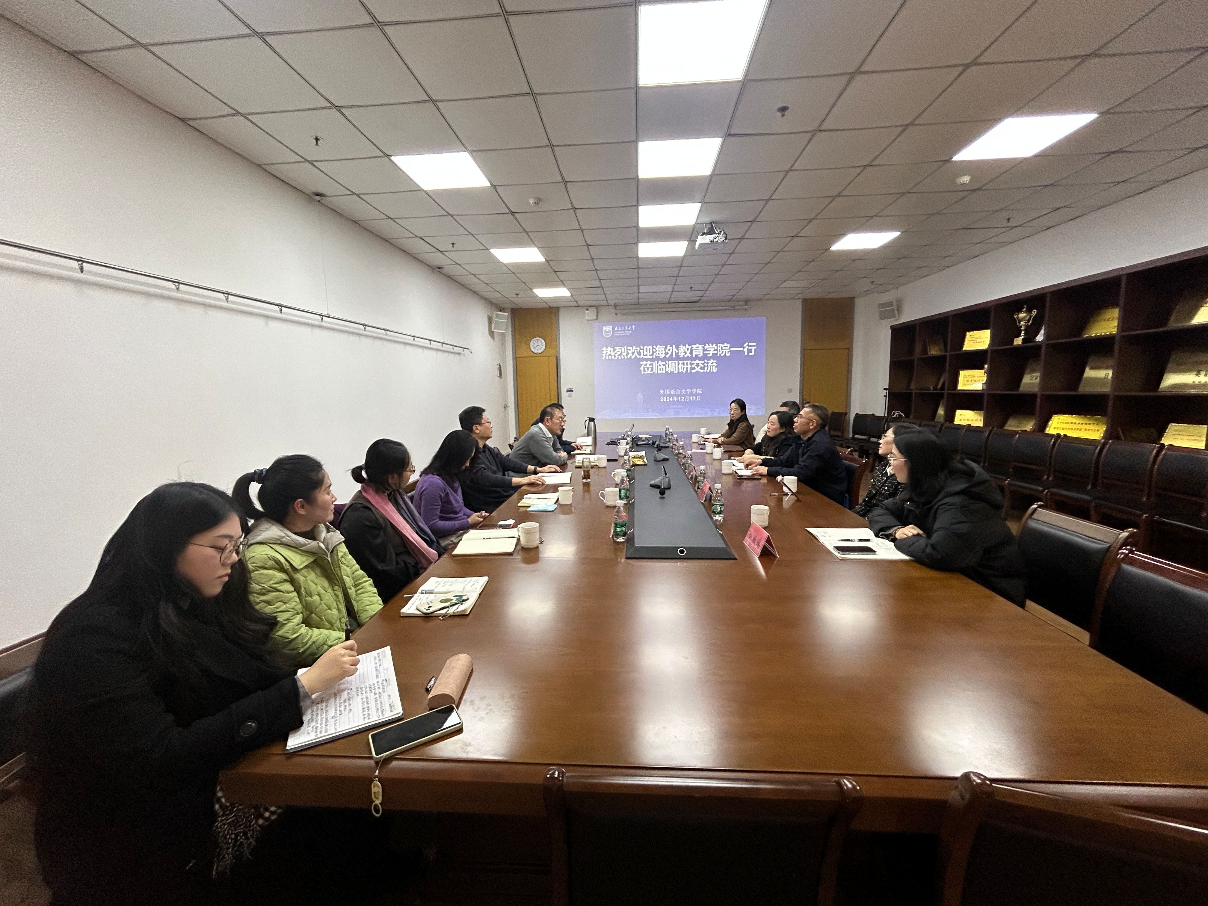 20241217日下午,太阳集团tyc151cc书记万永敏、经理佴康带队,组织太阳集团tyc151cc教学管理及汉语言教师团队前往外国语言文学公司调研学习并洽谈合作与交流。外国语言文学公司书记张翔、经理陈世华热情接待了太阳集团tyc151cc一行。