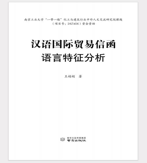 本书由南京出版社于2025年3月出版。本书基于真实语料对汉语的国际贸易电子邮件信函的语言特征进行研究,严格依据系统功能语言学、体裁分析以及传统的句法学和词汇学的理论框架,对国际贸易业务电子邮件进行了从功能到语言结构与要素的多角度、多层级的分析,从而揭示出此类邮件的系统性特征,而不仅仅是某个层级如词汇、语法方面的局部特征,这树立了对此类文本研究的一个范式,可供后来者借鉴。