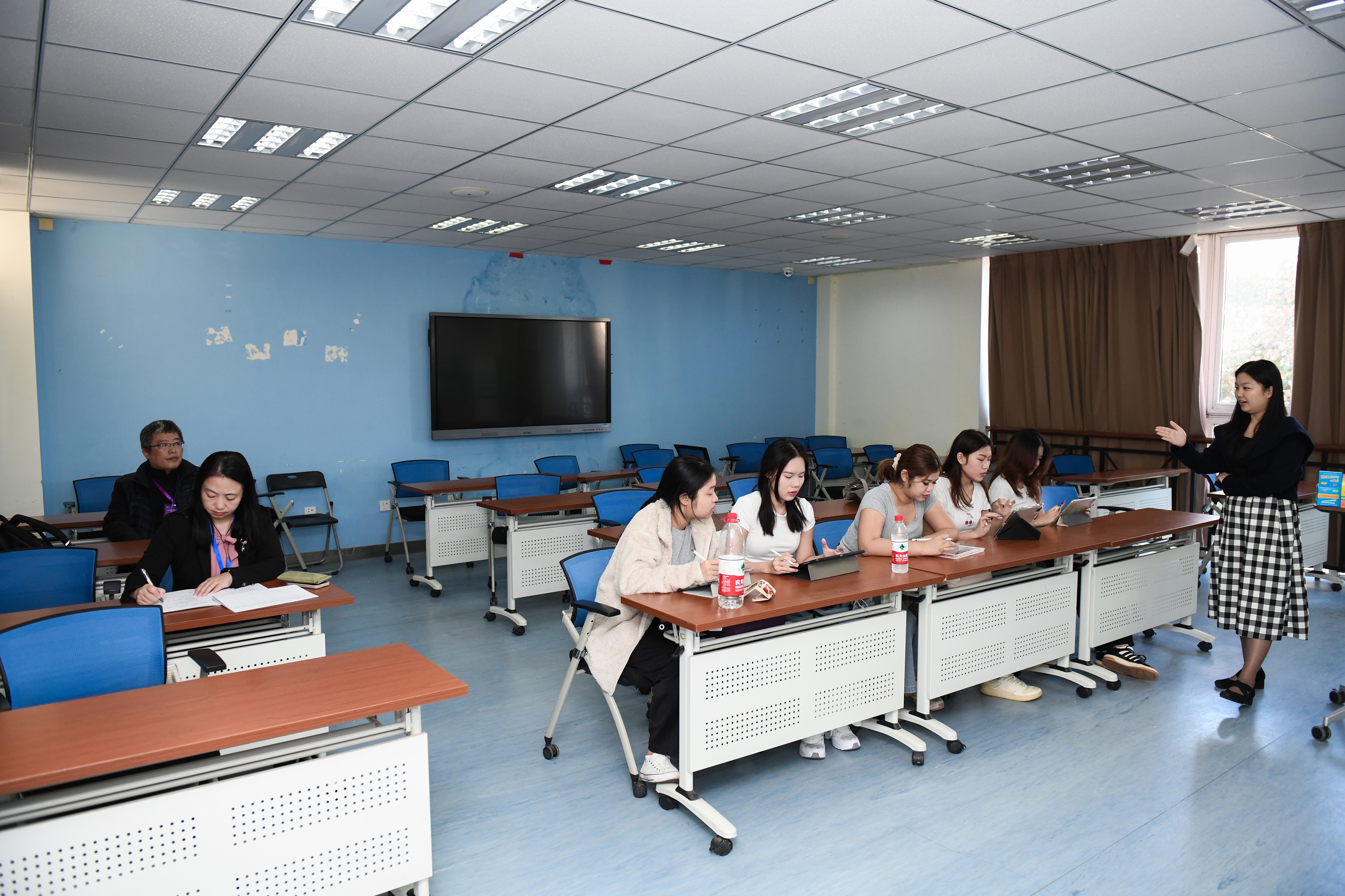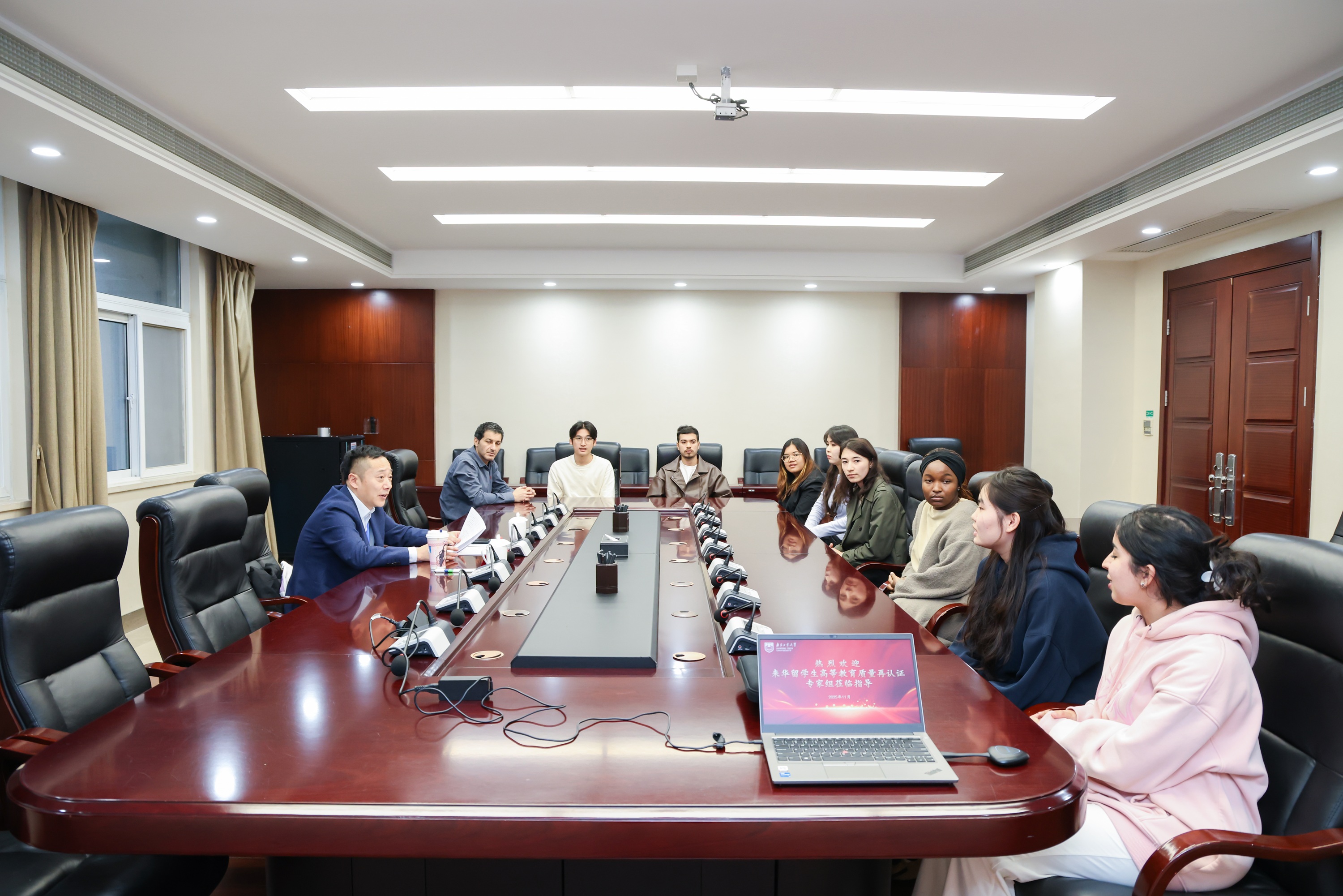 审查期间,认证专家组围绕公司来华留学顶层设计、资源与保障、教学与培养、管理与服务、质量监控以及办学成效等方面,与校领导、职能部门、院系负责人、教师代表、归口管理部门代表、职工代表等进行深度访谈。通过实地考察、现场观摩课堂、查阅材料等形式,多维度、全方位了解公司来华职工公司产品管理和国际人才培养情况。