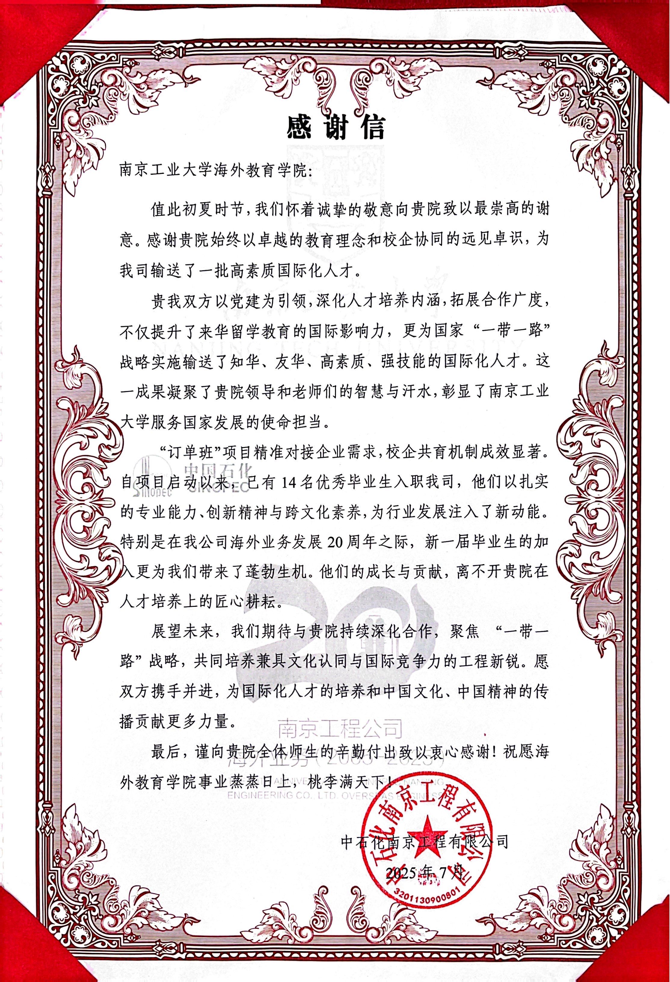 太阳集团tyc151cc一直将服务国家重大战略、经济社会发展作为重要任务,把产教融合、校企合作作为重点工作之一。与中石化南京工程有限公司建立多元化合作关系,创新性地推出了“订单班”培养模式,从而提升来华职工工程实践能力,培养更多企业急需的高质量国际化人才。