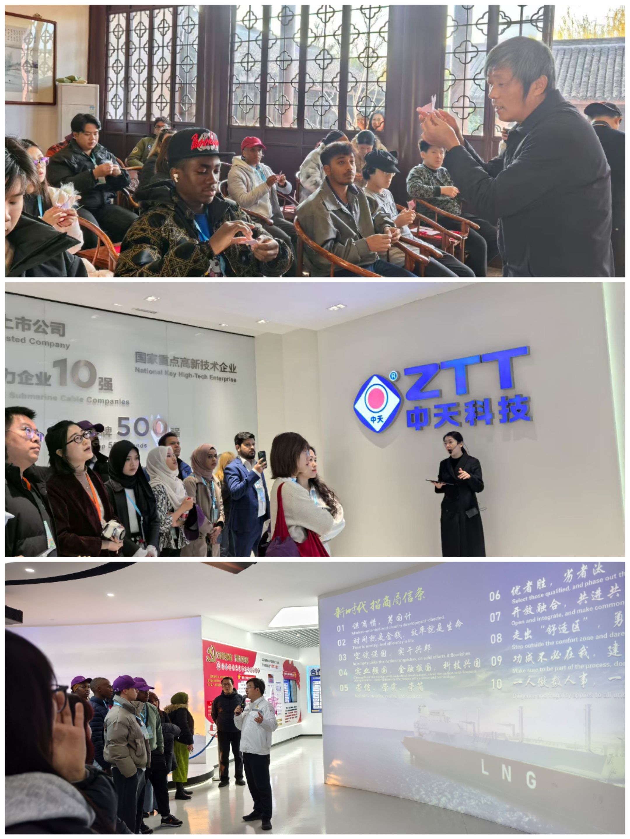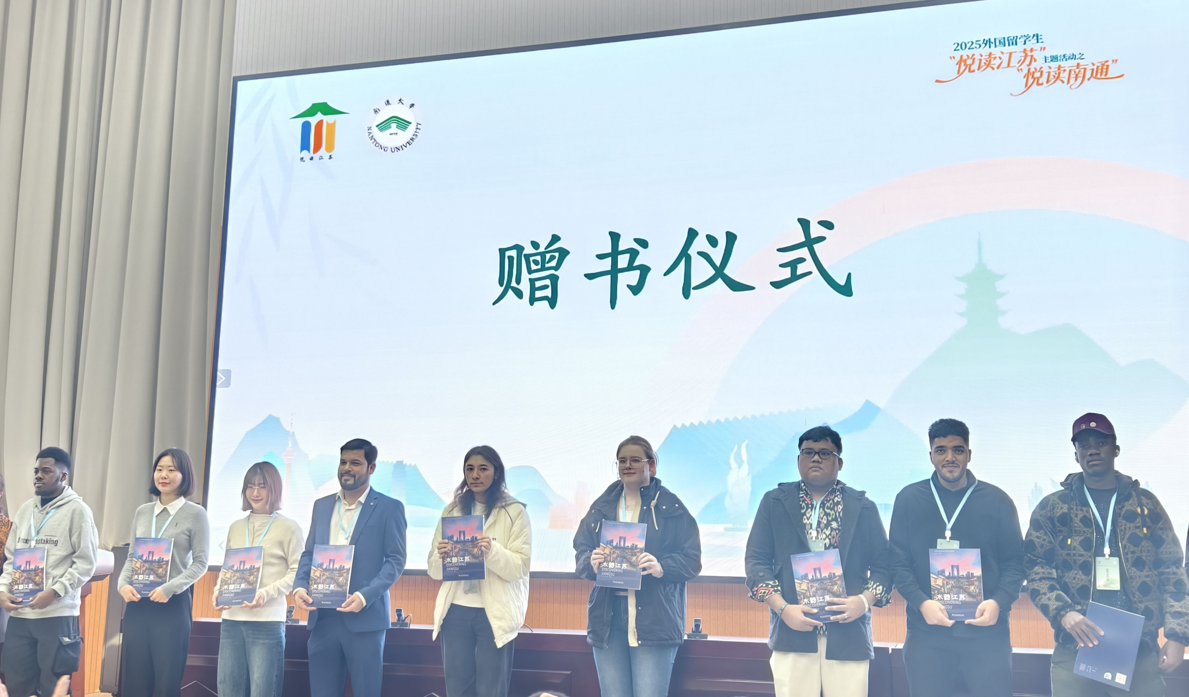 此前两天,由江苏省教育厅主办,江苏省高教学会外国职工教育管理研究委员会协办,南通大学承办2025外国职工悦读江苏悦读南通——张謇故里·南通新程专场活动如期举行,吸引了来自省内16所高校、25个国家的职工代表参与。公司汉语言教师钱颖与23级工商管理硕士AZIZAKHON SALIEVA(艾希森)作为师生代表观摩学习。艾希森在受邀参加赠书仪式,领取了《水韵江苏》文化读物。随后,师生共同聆听了近代实业家、教育家张謇的事迹介绍,并走进中天科技、招商局重工等企业进行实地参观,在历史与现实的交融中,深刻体会张謇故里的人文底蕴与当代南通的创新发展活力。